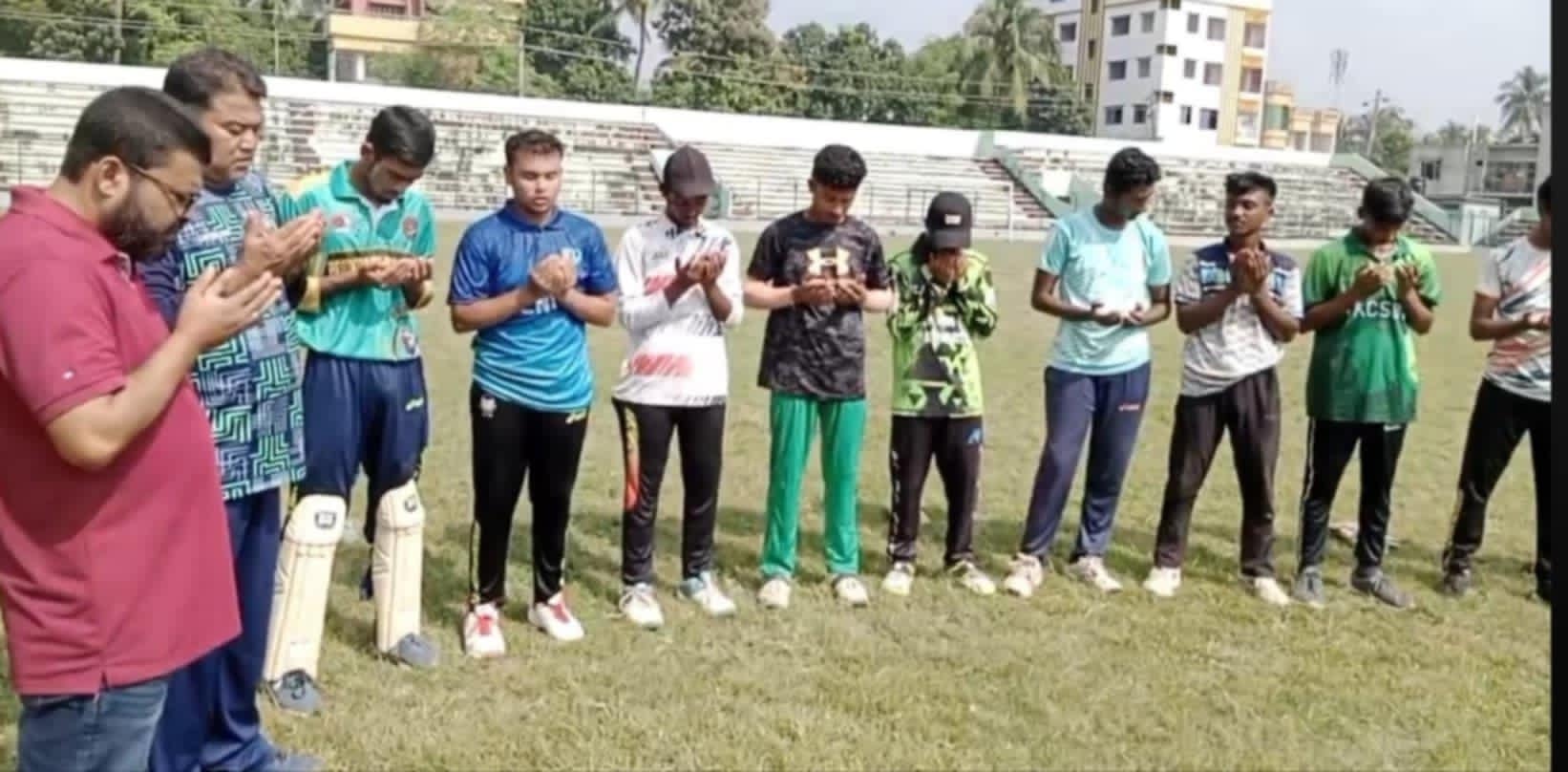 মেহেরপুর সরকারী কলেজের অবসরপ্রাপ্ত ক্রীড়া শিক্ষক রমজান আলীর মৃত্যুর সংবাদ শুনে মেহেরপুর স্টেডিয়াম মাঠে অনুশীলনরত ক্রিকেটাররা মরহুমের বিদেহী আত্মার শান্তি কামনায় দোয়া করেছে।