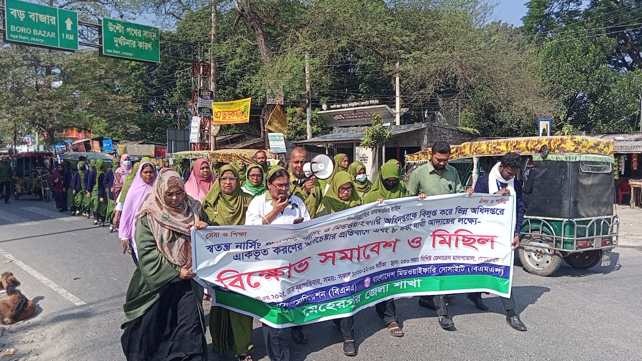 মূলপাতা বর্তমান পরিপ্রেক্ষিত অধিদপ্তর একীভূতকরণের প্রস্তাব বাতিলসহ ৮ দফা দাবিতে মেহেরপুরে নার্সদের বিক্ষোভ
