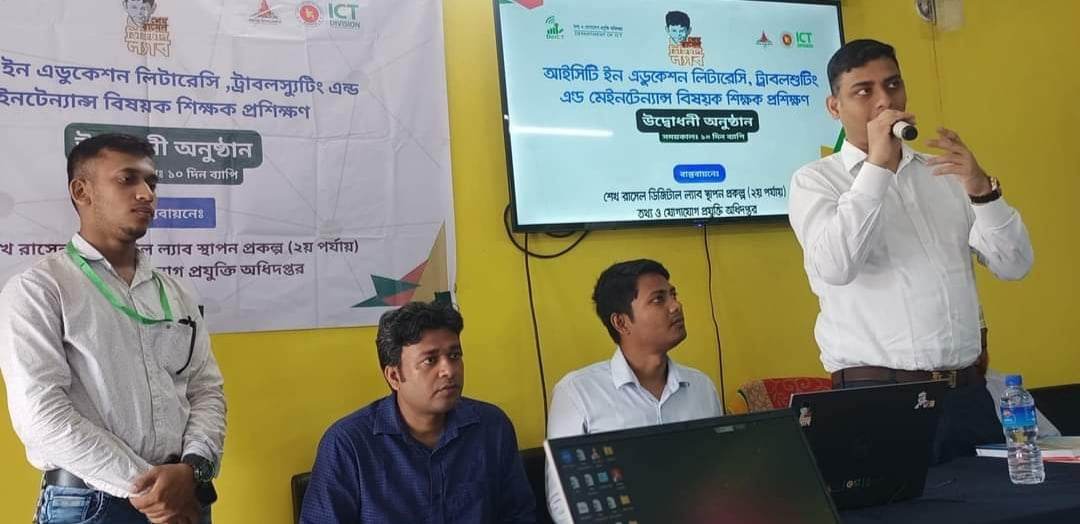 তথ্য ও যোগাযোগ প্রযুক্তি অধিদপ্তরের আওতাধীন শেখ রাসেল ডিজিটাল ল্যাব প্রকল্প (২য় পর্যায়ে) শিক্ষকদের ১০ দিনব্যাপী আইসিটি (আইসিটি ইন এডুকেশন লিটারেসি, ট্রাবলশুটিং ও মেনটেনেন্স) প্রশিক্ষণের উদ্বোধন করা হয়েছে।