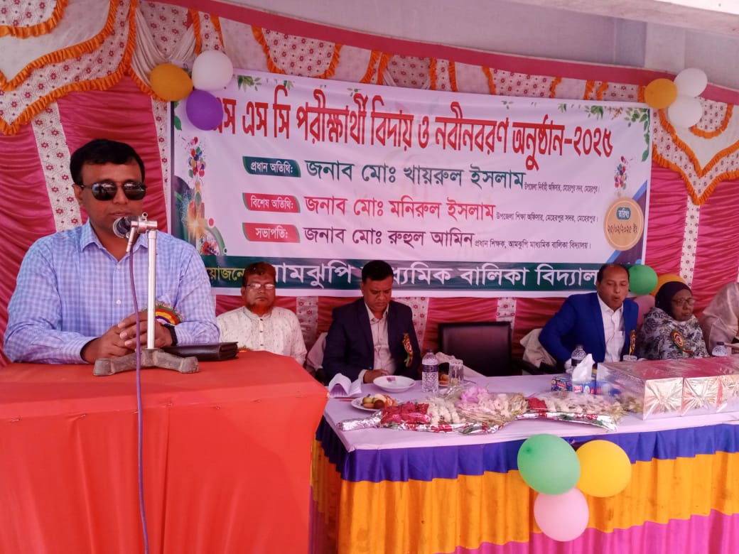 মেহেরপুর সদর উপজেলার আমঝুপি মাধ্যমিক বালিকা বিদ্যালয়ে নবীন বরণ ও এস এস সি পরীক্ষার্থীদের বিদায় অনুষ্ঠান ২০২৫ অনুষ্ঠিত হয়েছে। এতে সভাপতিত্ব করেন প্রধান শিক্ষক রুহুল আমিন।