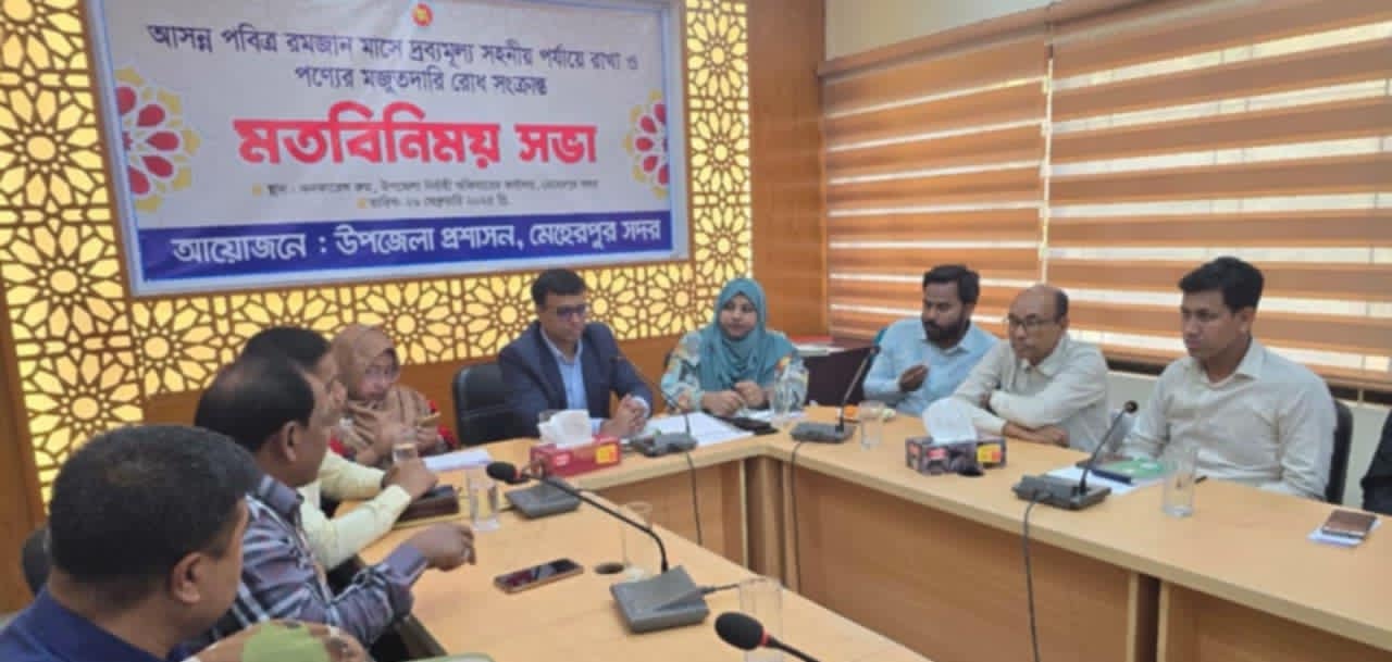 বুধবার দুপুরের দিকে মেহেরপুর সদর উপজেলা পরিষদ মিলনায়তনে দ্রব্যমূল্য সহনশীল পর্যায়ে রাখা ও পণ্যের মজুমদারি রোধ সংক্রান্ত মতবিনিময় সভা অনুষ্ঠিত হয়।