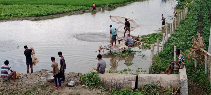 মেহেরপুর সদর উপজেলা শ্যামপুর ইউনিয়নের গোপালপুর রুইমারীর খালের এক প্রান্ত থেকে অপর প্রান্ত পর্যন্ত শতাধিক ব্যক্তিকে ক্ষ্যাপলা জাল সহ ছিপ,হুইল দিয়ে মাছ শিকার করতে দেখা গেছে। ভারী বর্ষণের ফলে মূলত মাছ ধরা উৎসবে পরিণত হয়েছে।