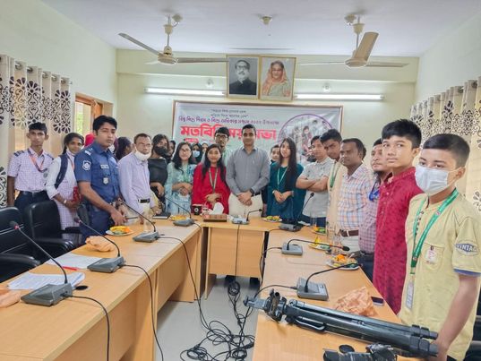 মঙ্গলবার সকাল দশটায় মেহেরপুর সদর উপজেলা পরিষদ মিলনায়তনে মতবিনিময় সভা অনুষ্ঠিত হয়। মেহেরপুর জেলা এনসিটিএফ এর সভাপতি ফাহিম রুমির সভাপতিত্বপ প্রধান অতিথি হিসেবে বক্তব্য রাখেন মেহেরপুর সদর উপজেলা নির্বাহী কর্মকর্তা মোঃ ওবায়দুল্লাহ।মেহেরপুর জেলা এনসিটিএফ এর সাধারণ সম্পাদক নুসরাত শারমিন ও সহ-সভাপতি নওরিন জাহানের সঞ্চালনায় বিশেষ অতিথি হিসেবে বক্তব্য রাখেন মেহেরপুর সদর উপজেলা শিক্ষা কর্মকর্তা আনোয়ার হোসেন, সিনিয়র সাংবাদিক তুহিন অরণ্য, মেহেরপুর সদর থানার এসআই সুমন।