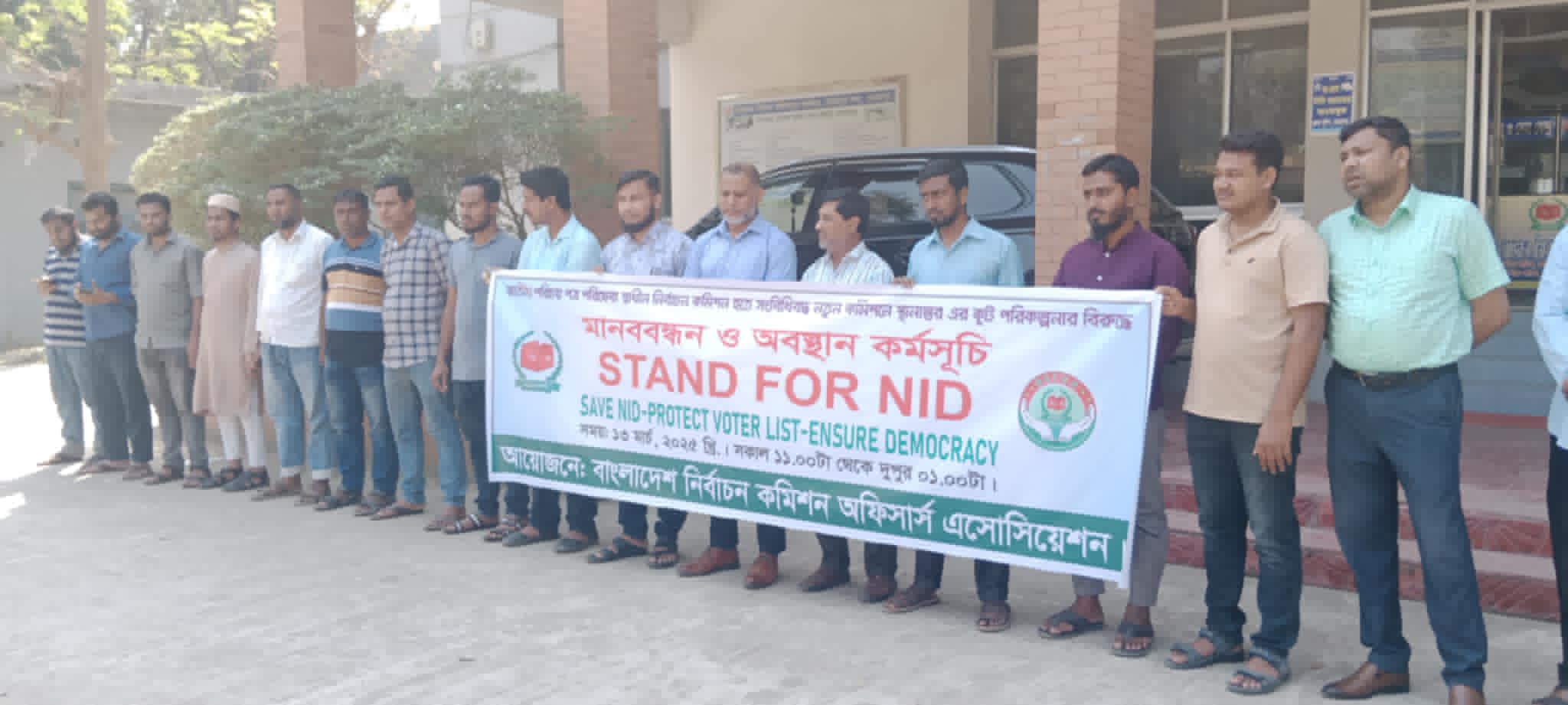 ভোটার তালিকা প্রণয়ন বাংলাদেশ নির্বাচন কমিশনের সাংবিধানিক দায়িত্ব। যদি সকল তথ্য ভান্ডারকে একসাথে করতে হয় এবং স্বাধীন কর্তৃপক্ষের অধীনে নিতে হয় তাহলে বাংলাদেশ নির্বাচন কমিশন একটি সর্বোত্তম সাংবিধানিক ও শক্তিশালী জাতীয় প্লাটফর্ম হিসেবে বিবেচিত হওয়া অতি স্বাভাবিক। মানববন্ধনে বাংলাদেশ নির্বাচন কমিশন অফিসার্স অ্যাসোসিয়েশনের নেতৃবৃন্দ উপস্থিত ছিলেন।