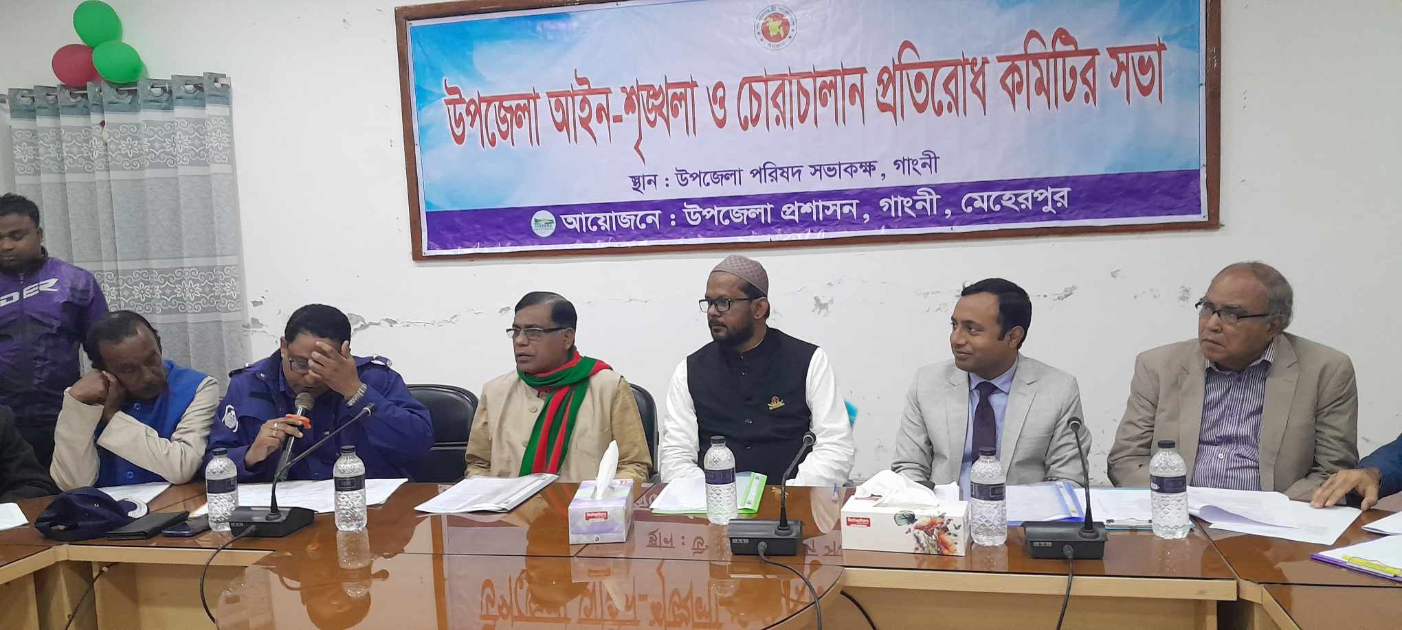 মেহেরপুরের গাংনীতে আইনশৃঙ্খলা ও চােরাচালান প্রতিরােধ কমিটির সভা অনুষ্ঠিত হয়েছে।