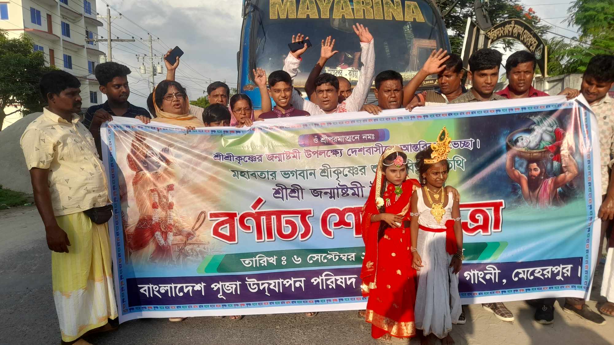 মেহেরপুরের গাংনীতে জন্মাষ্টমী উপলক্ষে পূজা উদযাপন কমিটির শােভাযাত্রা অনুষ্ঠিত হয়েছে।