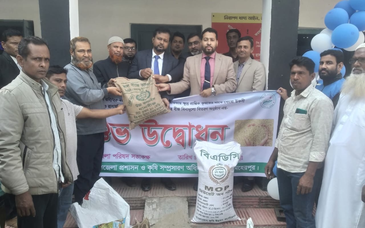 মেহেরপুরের গাংনীতে ২০২৫-২৬ অর্থ বছরের রবি মৌসুমের প্রণোদনা কর্মসূচীর আওতায় বোরো উফসী ও বোরো হাইব্রিড ধান বীজ ও রাসায়নিক সার বিতরণের উদ্বোধন করা হয়েছে। উৎপাদন বৃদ্ধির লক্ষ্যে ক্ষুদ্র ও প্রান্তিক কৃষকের মাঝে বিনামূল্যে বীজ ও সার বিতরণ করা হয়।