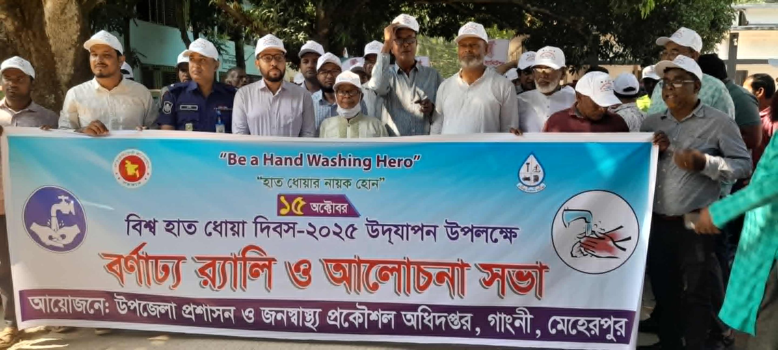 মেহেরপুরের গাংনীতে বিশ্ব হাত ধোয়া দিবস পালিত হয়েছে। এ উপলক্ষে বুধবার সকাল ১১টার দিকে র্যালী ও আলোচনা সভা অনুষ্ঠিত হয়।