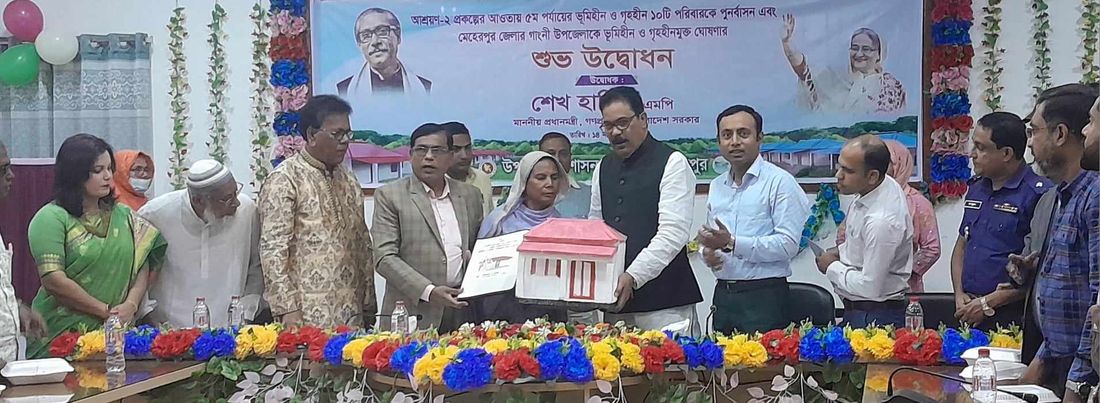 মঙ্গলবার গণভবন থেকে ভিডিও কনফারেন্সের মাধ্যমে উন্নয়ন প্রকল্পগুলোর উদ্বোধন ও ভিত্তিপ্রস্তর স্থাপন করেন প্রধানমন্ত্রী। এরই অংশ হিসাবে মেহেরপুরের গাংনীতে ১০ টি পরিবার পেলাে সরকারী ঘর। সেই সাথে উপজেলার কয়েকটি বিদ্যালয়ের অবকাঠামাে উন্নয়ন কাজের উদ্বোধন করা হয়। একই সাথে উপজেলার সাহারবাটী স্থাপনকৃত শেখ রাসেল মিনি স্টেডিয়ামের ভিত্তিপ্রস্তুরের উদ্বােধন করা হয়। গাংনী উপজেলা পরিষদ সম্মেলন কক্ষে ১০ পরিবারকে আনুষ্ঠানিক ঘরের চাবি প্রদান করা হয়। উপজেলা প্রশাসন আয়োজিত এ অনুষ্ঠানে সভাপতিত্ব করেন উপজেলা নির্বাহী অফিসার প্রীতম সাহা।