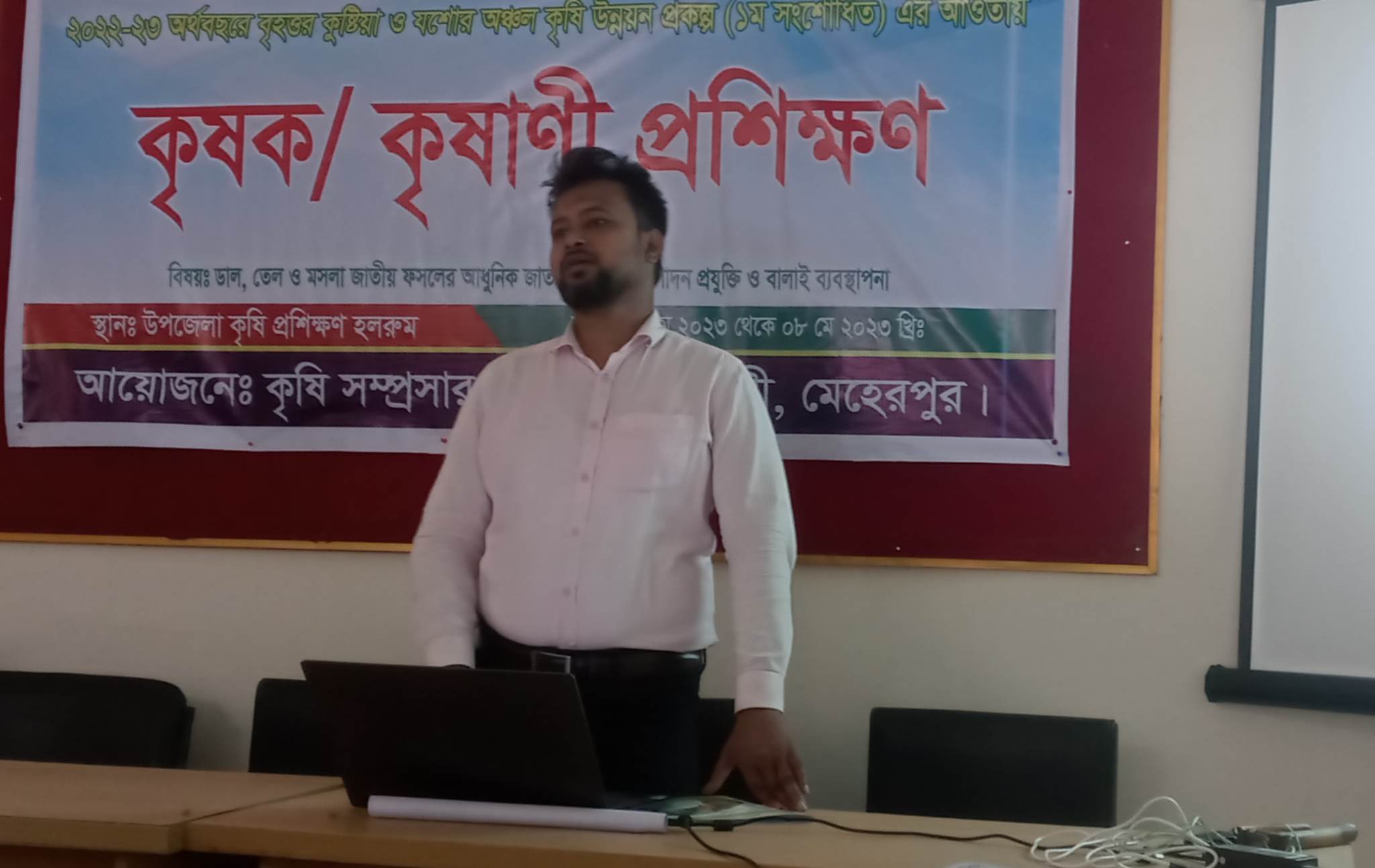২০২২-২৩ অর্থ বছরে বৃহত্তর কুষ্টিয়া ও যশাের অঞ্চল কৃষি উন্নয়ন (১ম সংশােধিত) এর আওতায় ডাল,তেল ও মসলা জাতীয় ফসলের আধুনিক জাত পরিচিতি,উৎপাদন, প্রযুক্তি ও বালাই ব্যবস্থাপনার উপর মেহেরপুরের গাংনীতে ৩দিনের এক কৃষক প্রশিক্ষণের উদ্বোধন করা হয়েছে।