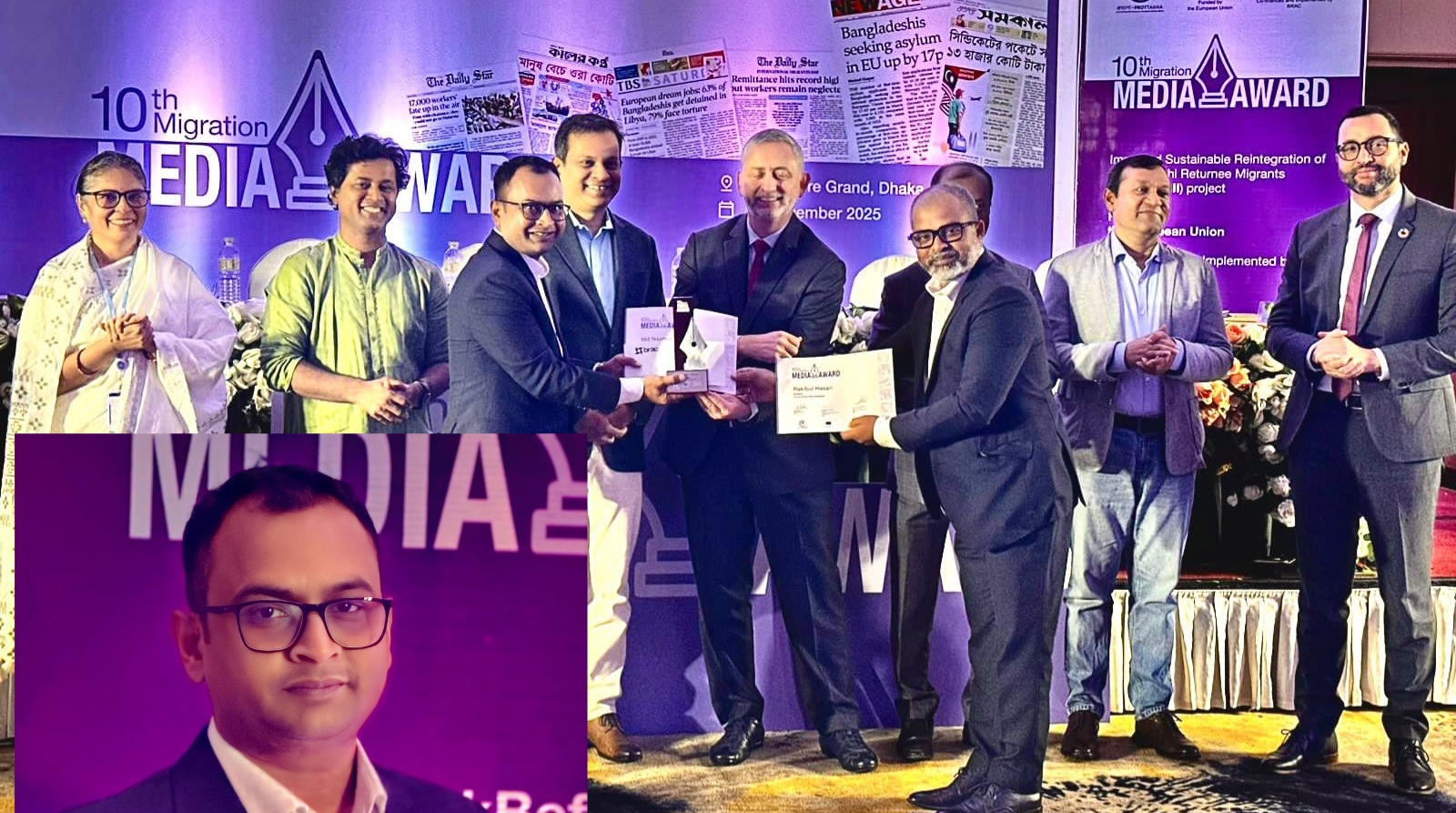 অভিবাসন খাতের অনিয়ম ও দুর্নীতি নিয়ে করা অনুসন্ধানী প্রতিবেদনের জন্য টানা তৃতীয় বারের মতো ‘ব্র্যাক মাইগ্রেশন মিডিয়া আওয়ার্ড’ পেলেন ইনডিপেনডেন্ট টেলিভিশনের অনুসন্ধানীমূলক অনুষ্ঠান তালাশের সিনিয়র রিপোর্টার নাজমুল সাঈদ।