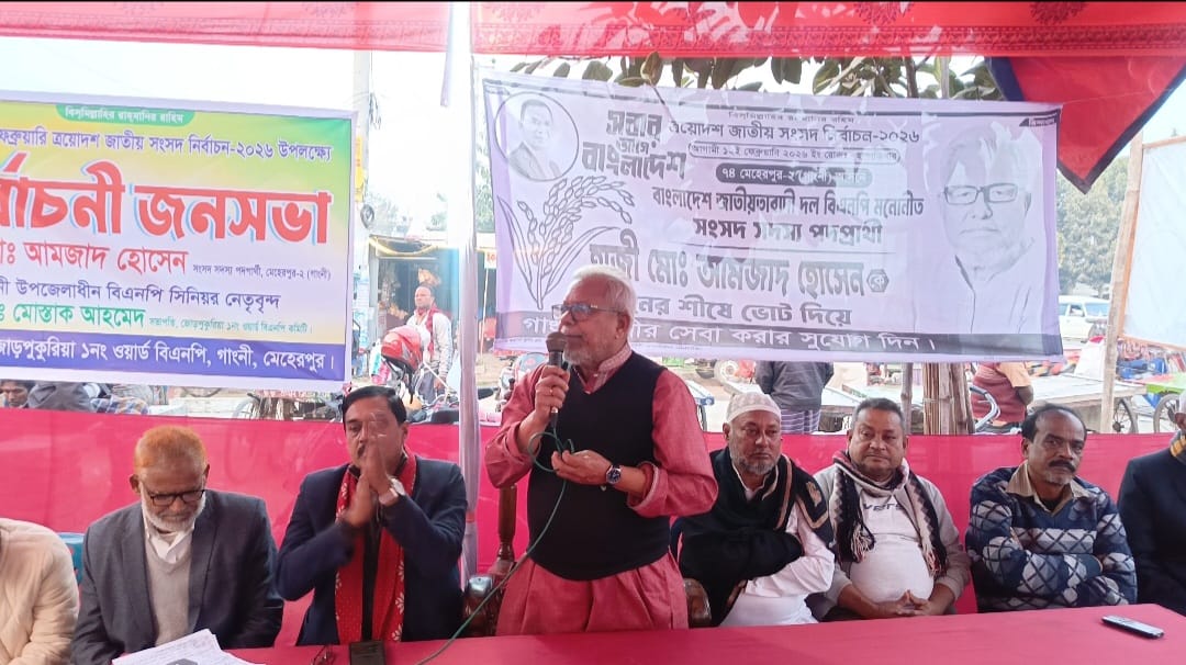 মেহেরপুরের গাংনী উপজেলার সাহারবাটী ইউনিয়নের জোড়পুকুরিয়া গ্রামে নির্বাচনী জনসভা অনুষ্ঠিত হয়েছে।