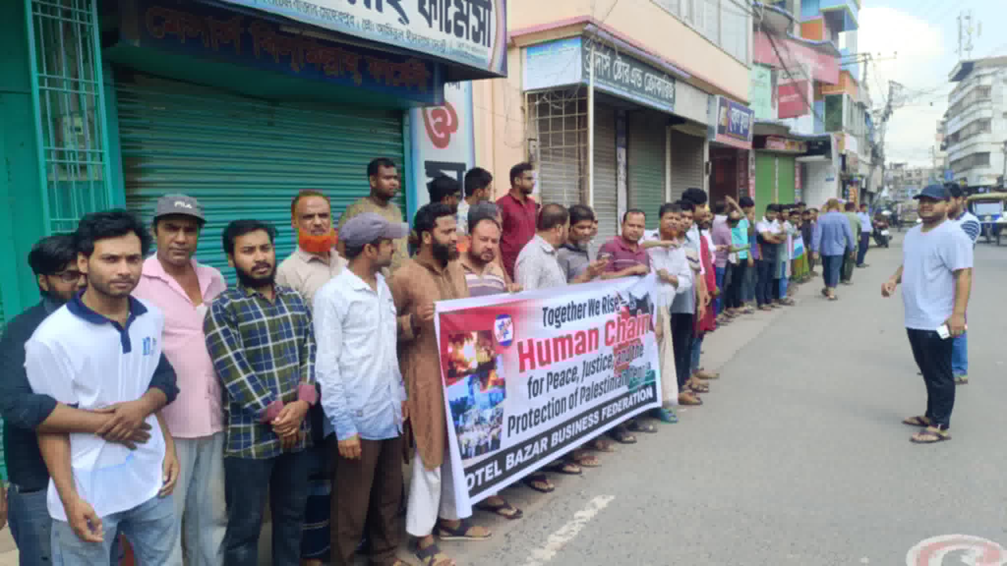 গাজা উপত্যকায় ফিলিস্তিনি জনগণের উপর ইসরায়েলের বর্বর হামলার প্রতিবাদে দোকানপাট বন্ধ কর্মসূচিসহ মানববন্ধন করেছে মেহেরপুর হোটেল বাজার ব্যবসায়ী সমিতি।