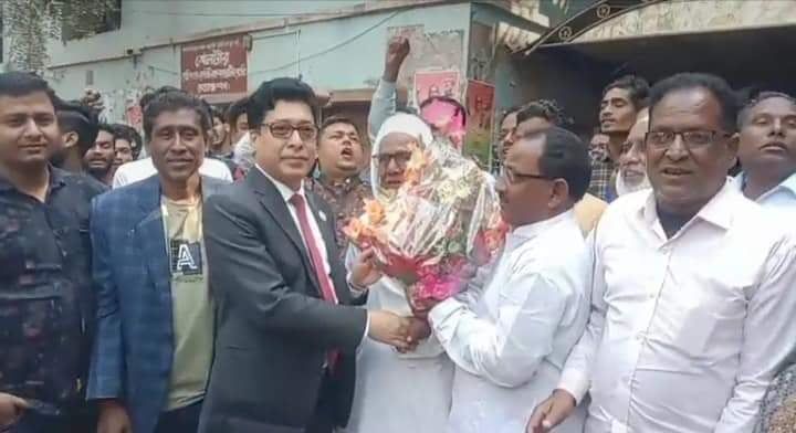 আমদহ ইউনিয়ন পরিষদ নির্বাচনে আওয়ামী লীগ মনোনীত প্রার্থী রওশন আলী টোকন জনপ্রশাসন প্রতিমন্ত্রী ও জেলা আওয়ামী লীগের সভাপতি ফরহাদ হোসেনের সাথে শুভেচ্ছা বিনিময় করেছেন বৃহস্পতিবার বিকালের দিকে জনপ্রশাসন প্রতিমন্ত্রী ফরজ হোসেনের বাসভবন প্রাঙ্গণে এ শুভেচ্ছা বিনিময় করেন। এসময় আমদহ ইউনিয়ন পরিষদ নির্বাচনে আওয়ামী লীগ মনোনীত প্রার্থী রওশন আলী টোকন জনপ্রশাসন প্রতিমন্ত্রী ফরহাদ হোসেনকে ফুলের তোলা দিয়ে শুভেচ্ছা জানান।