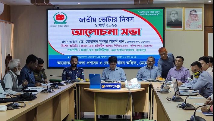 জাতীয় ভোটার দিবস উপলক্ষে মেহেরপুরে আলোচনা সভা অনুষ্ঠিত হয়েছে। বৃহস্পতিবার সকালে জেলা প্রশাসকের সম্মেলন কক্ষে জাতীয় ভোটার দিবস উপলক্ষে আলোচনাসভা অনুষ্ঠিত হয়।