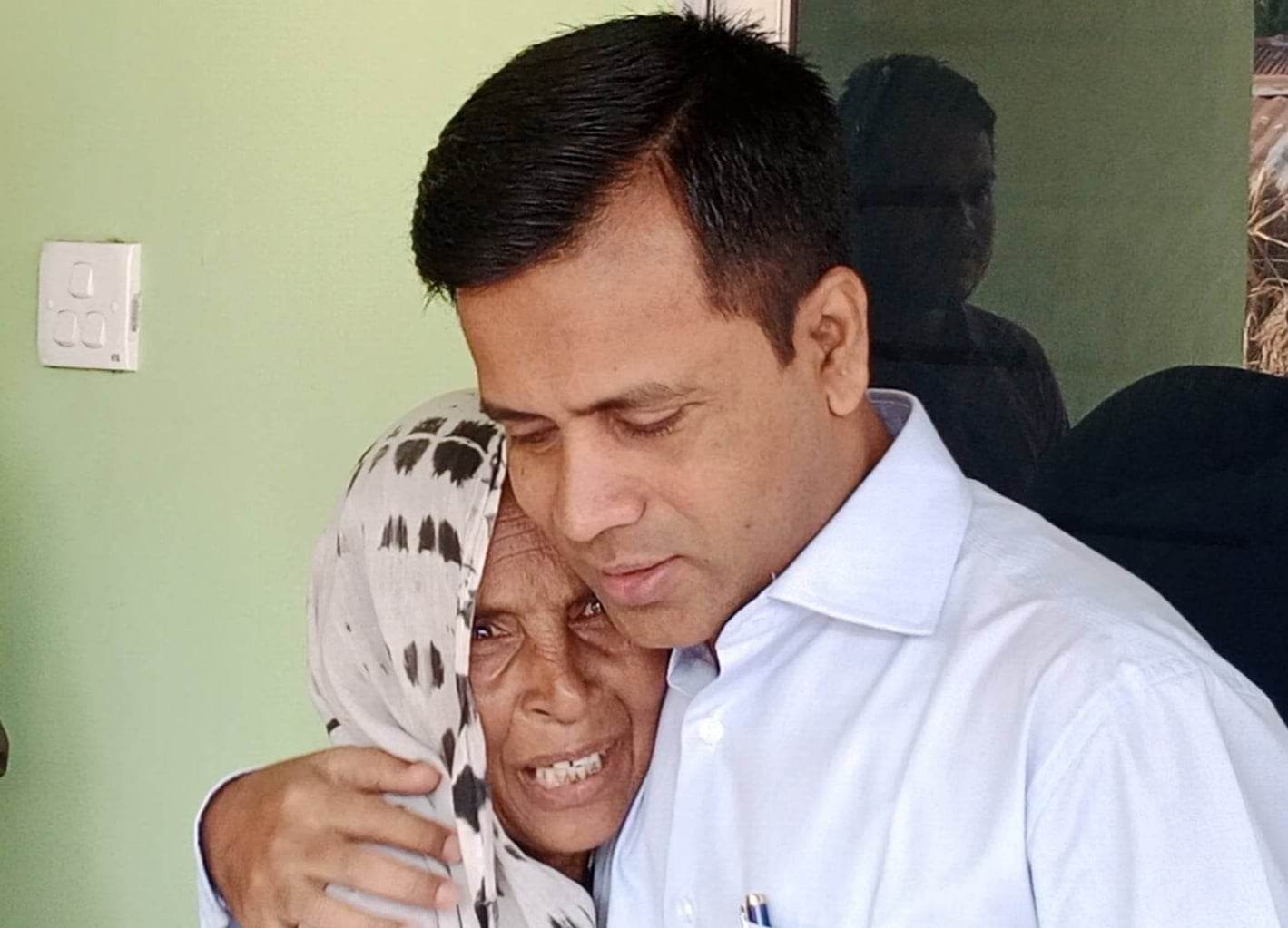 মেহেরপুরের জেলা প্রশাসক মোহাম্মদ আজিজুল ইসলামকে কাছে পেয়ে জড়িয়ে ধরলেন বীর মুক্তিযোদ্ধার স্ত্রী রাবিয়া খাতুন।