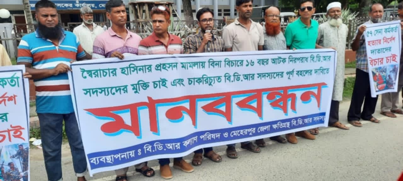 পিলখানা হত্যাকাণ্ডের ঘটনায় চাকুরীচ্যুত বিডিআর সদস্যদের চাকরিতে পুনর্বহালের দাবিতে মানববন্ধন ও স্মারকলিপি প্রদান করা হয়েছে।