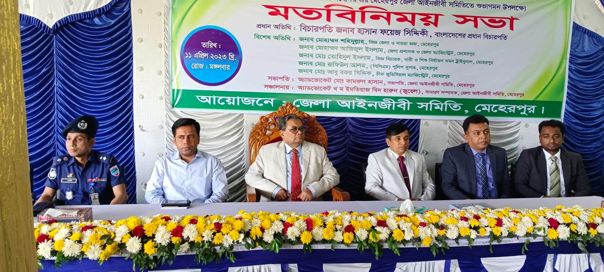 মেহেরপুর জেলা আইনজীবী সমিতির সভাপতি কামরুল হাসানের সভাপতিত্বে মতবিনিময় সভায় প্রধান অতিথি হিসেবে বক্তব্য রাখেন প্রধান বিচারপতি হাসান ফয়েজ সিদ্দিকী। এর আগে প্রধান বিচারপতি হাসান ফয়েজ সিদ্দিকী জেলা আইনজীবী সমিতির সম্মেলন কক্ষে এসে পৌঁছালে জেলা আইনজীবী সমিতির পক্ষ থেকে তাঁকে ফুলেল শুভেচ্ছা জানানো হয়।