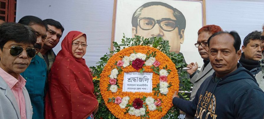 মূলপাতা বর্তমান পরিপ্রেক্ষিত বঙ্গবন্ধুর স্বদেশ প্রত্যাবর্তন দিবস উপলক্ষে বঙ্গবন্ধুর প্রতিকৃতি পুষ্প মাল্য অর্পণ