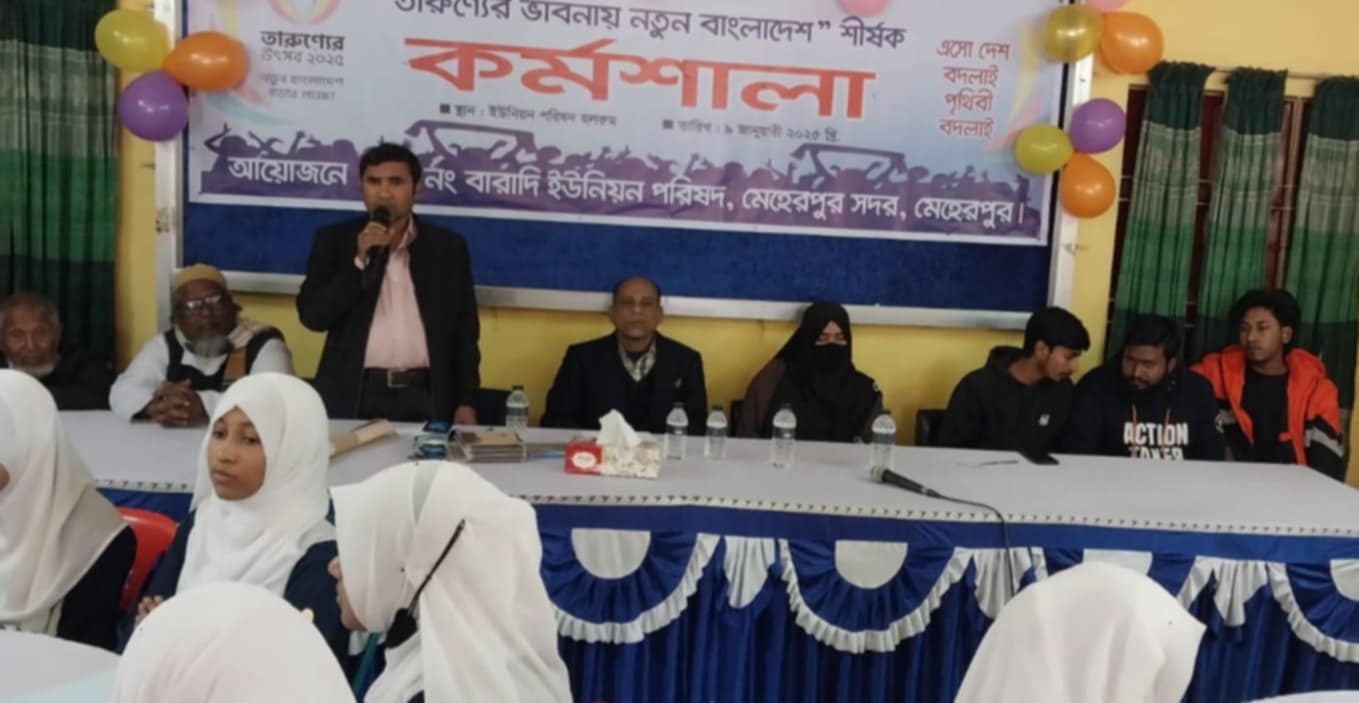 মেহেরপুর সদর উপজেলার বাড়াদি ইউনিয়ন পরিষদের উদ্যোগে তারুণ্যের উৎসব ২০২৫ উপলক্ষে “তারুণ্যের ভাবনায় নতুন বাংলাদেশ ” শীর্ষক কর্মশালার আয়োজন করা হয়।