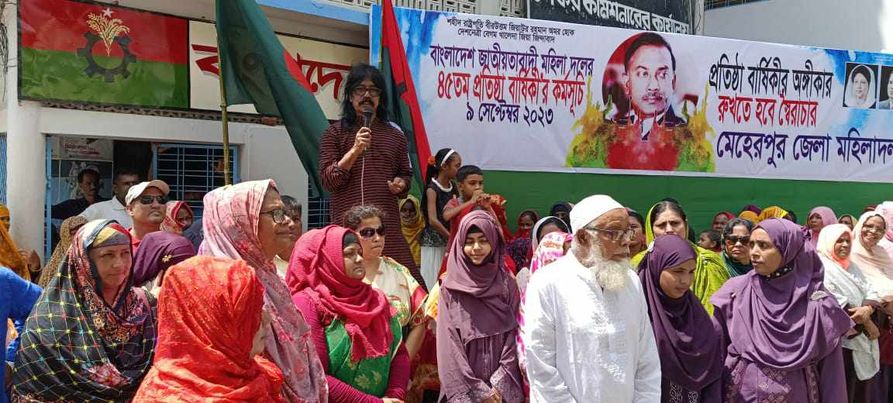 শনিবার সকালের দিকে মেহেরপুর জেলা বিএনপি কার্যালয়ের সামনে এই আলোচনা সভা অনুষ্ঠিত হয়। মেহেরপুর জেলা জাতীয়তাবাদী মহিলা দলের সভাপতি সায়দাতুন্নেসা নয়নের সভাপতিত্বে প্রধান আলোচনা সভায় অতিথি হিসেবে বক্তব্য রাখেন মেহেরপুর জেলা বিএনপির সভাপতি ও সাবেক সংসদ সদস্য মাসুদ অরুণ।