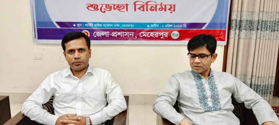 রবিবার সন্ধ্যায় মেহেরপুর সার্কিট হাউজ মিলনায়তনে এ শুভেচ্ছা অনুষ্ঠান অনুষ্ঠিত হয়। অতিরিক্ত জেলা প্রশাসক লিংকন বিশ্বাসের সভাপতিত্বে শুভেচ্ছা বিনিময় অনুষ্ঠানে বিদায়ী জেলা প্রশাসক ড.মোহাম্মদ মুনসুর আলম খান নবাগত জেলা প্রশাসক মোহাম্মদ আজিজুল ইসলামকে ফুল দিয়ে শুভেচ্ছা জানান। পরে সেখানে অতিথিদের সম্মানে ইফতার পার্টির আয়োজন করা হয়।
