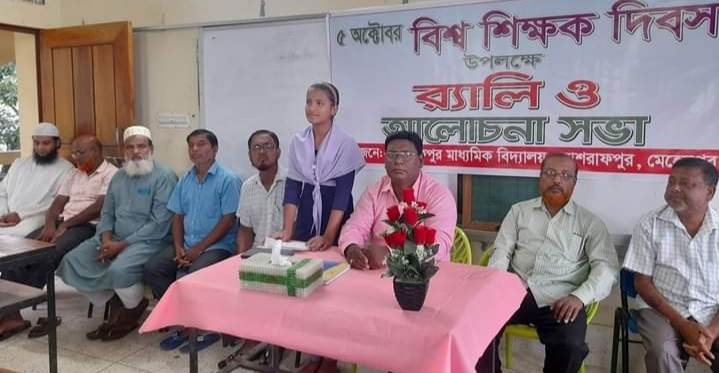বিশ্ব শিক্ষক দিবস উপলক্ষে মেহেরপুর সদর উপজেলার আশরাফপুর মাধ্যমিক বিদ্যালয়ে আলোচনা সভার আয়োজন করা হয়। বৃহস্পতিবার দুপুরের দিকে আশরাফপুর মাধ্যমিক বিদ্যালয় মিলনায়তনে এ আলোচনা সভা অনুষ্ঠিত হয়।