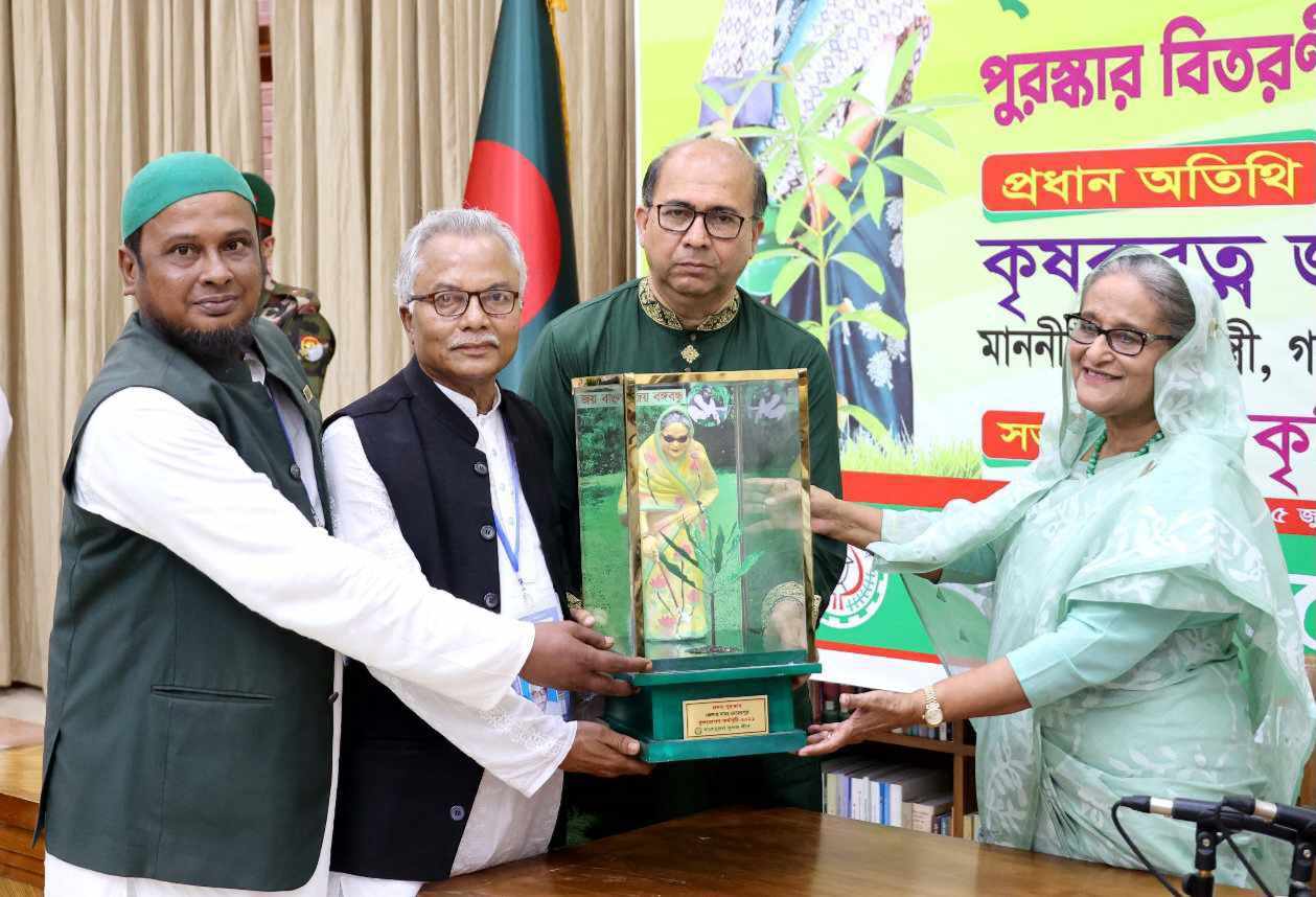 শনিবার সকাল ১০ টাই গণভবনে ২০২৪ বৃক্ষ রোপণ কর্মসূচির উদ্বোধন অনুষ্ঠানে আনুষ্ঠানিক ভাবে মাননীয় প্রধানমন্ত্রী, কৃষকরত্ন শেখ হাসিনা নিজ হাতে পুরস্কার প্রদান করেন। অনুষ্ঠানের সভাপতিত্ব করেন বাংলাদেশ কৃষক লীগের সভাপতি কৃষিবিদ সমীর চন্দ।