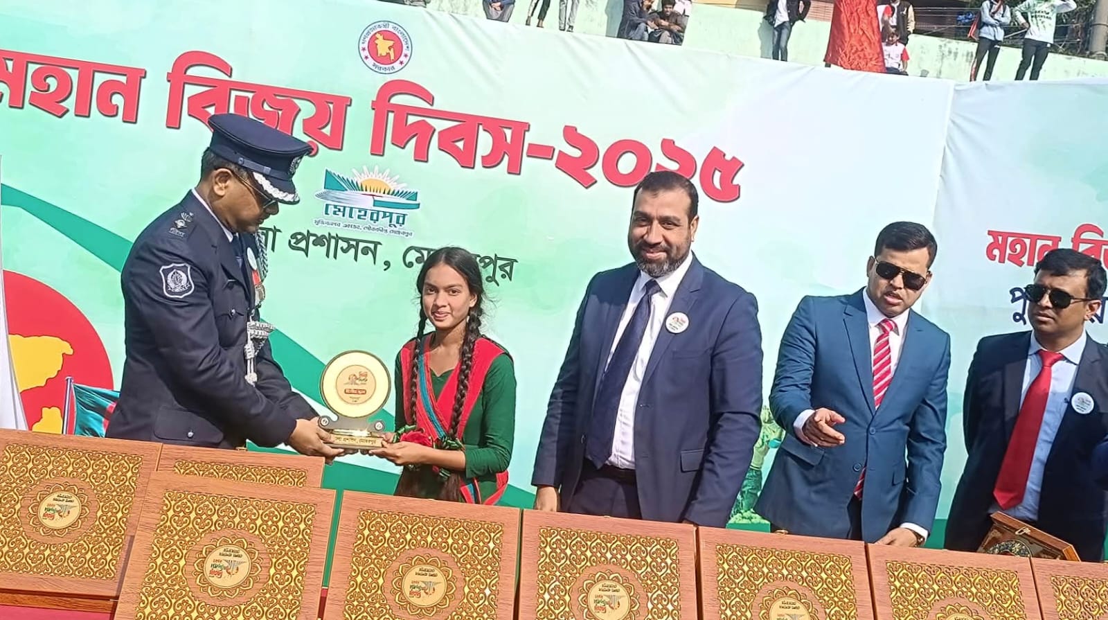 কুচকাওয়াজ শেষে মনোজ্ঞ ডিসপ্লে প্রদর্শিত হয় এবং পরে বিজয়ীদের মাঝে পুরস্কার বিতরণ করা হয়। কুচকাওয়াজের বড় গ্রুপে মেহেরপুর মাধ্যমিক বালিকা বিদ্যালয় ও বিএম কলেজ প্রথম স্থান অধিকার করে, সরকারি বালিকা উচ্চ বিদ্যালয় দ্বিতীয় এবং জিনিয়াস ল্যাবরেটরি স্কুল অ্যান্ড কলেজ তৃতীয় স্থান লাভ করে। ছোট গ্রুপে জিনিয়াস ল্যাবরেটরি স্কুল অ্যান্ড কলেজ প্রথম, হলি পাবলিক অ্যান্ড জুনিয়র হাই স্কুল দ্বিতীয় এবং কালেক্টরেট স্কুল তৃতীয় স্থান অর্জন করে।