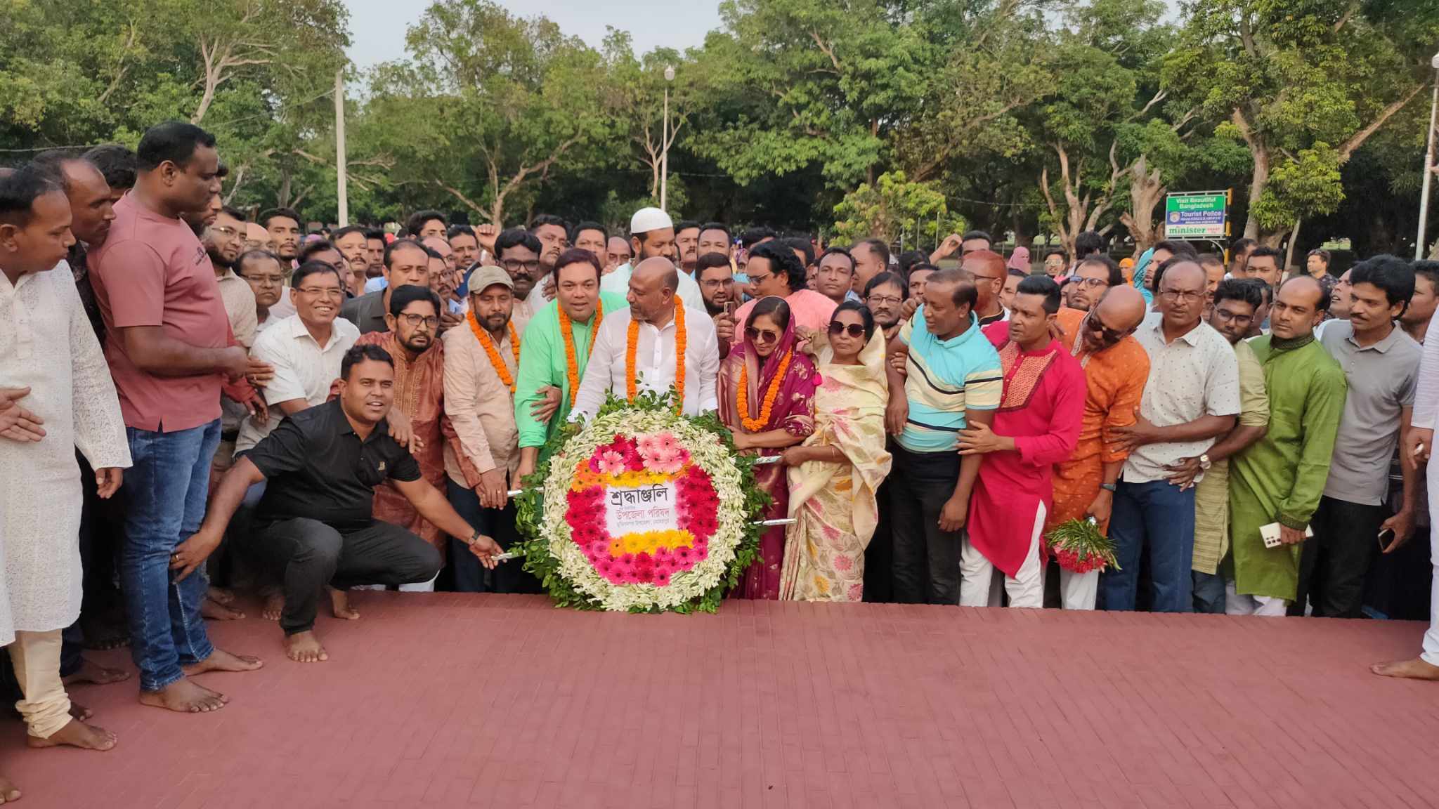 মেহেরপুরের মুজিবনগর উপজেলার নবনির্বাচিত উপজেলা চেয়ারম্যান ও ভাইস চেয়ারম্যানরা মুজিবনগর স্মৃতিসৌধে পুস্পস্তবক অর্পণ করেছেন।