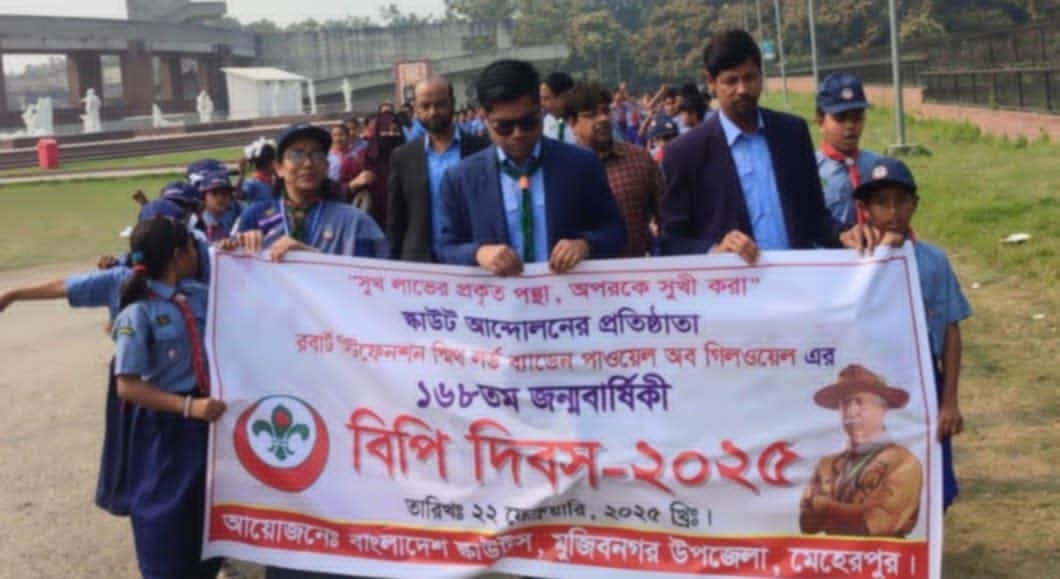 মেহেরপুরের মুজিবনগরে স্কাউট আন্দোলনের প্রতিষ্ঠাতা রবার্ট স্টিফেনশন স্মিথ লর্ড ব্যাডেন পাওয়েল অব গিলওয়েল এর ১৬৮তম জন্মবার্ষিকী ও বিপি দিবস ২০২৫ এবং কাব হলিডে পালন করা হয়েছে।