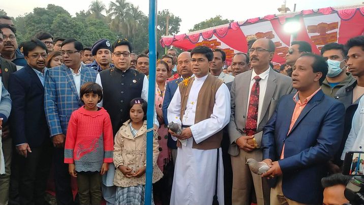 মুজিবনগর: মুজিবনগরে শুভ বড়দিন উপলক্ষে সপ্তাহব্যাপী ঐতিহ্যবাহী খ্রীষ্টিয় আনন্দ মেলার উদ্বোধন করা হয়েছে। রবিবার বিকেলে মুজিবনগর উপজেলার বল্লভপুর ফুটবল খেলার মাঠে জনপ্রশাসন প্রতিমন্ত্রী ফরহাদ হোসেন জাতীয় পতাকা উত্তোলন, মশাল প্রজ্বোলন এবং শান্তির প্রতিক পায়রা উড়িয়ে ঐতিহ্যবাহী সপ্তাহব্যাপী খ্রীষ্টিয় আনন্দ মেলার উদ্বোধন করেন। পরে মেলা প্রাঙ্গণে আলোচনা সভা ও সাংস্কৃতিক অনুষ্ঠানের আয়োজন করা হয়।
