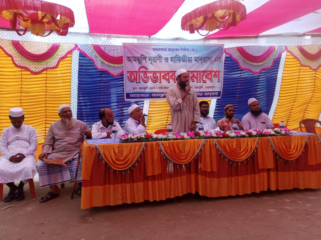 মদরাসার প্রধান শিক্ষক ওমর ফারুকের সঞ্চালনায় অভিভাবক সমাবেশের সভাপতিত্ব করেন হাজী মোঃ শামসুল হুদা শিশির। প্রধান অতিথি হিসেবে ছিলেম জহুরুল ইসলাম খান। বিশেষ অতিথি হিসেবে ছিলন নুরুল ইসলাম মির, সাহাদুল ইসলাম কানায়, আমঝুপি মাধ্যমিক বিদ্যালয়ের ক্রিয়া শিক্ষক শরীফ উদ্দিন, আমঝুপি মাধ্যমিক বালিকা বিদ্যালয়ের আলহাজ্ব বশির আহম্মেদ এবং সাংবাদিক শহিদুল ইসলাম।