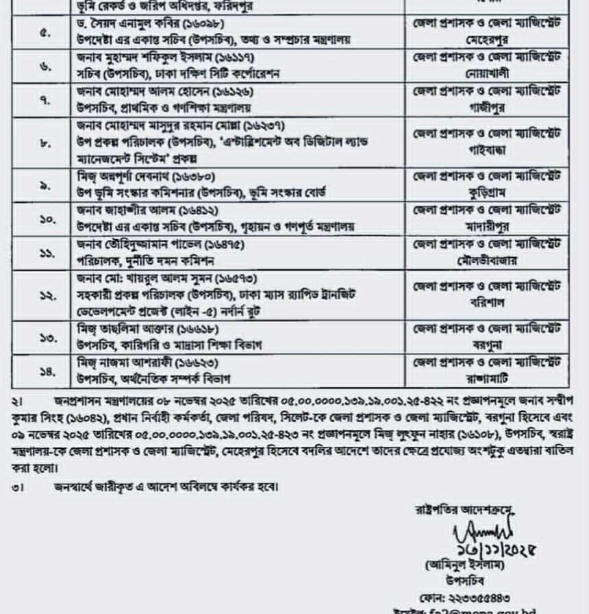 মেহেরপুরের জেলা প্রশাসক (ডিসি) পদে আবারও পরিবর্তন আনা হয়েছে। মাত্র চার দিন আগে স্বরাষ্ট্র মন্ত্রণালয়ের উপসচিব লুৎফুন নাহারকে মেহেরপুরের জেলা প্রশাসক হিসেবে নিয়োগ দেওয়া হলেও তার পরিবর্তে নতুন করে ড. সৈয়দ এনামুল কবিরকে মেহেরপুরের জেলা প্রশাসক হিসেবে নিয়োগ দেওয়া হয়েছে।