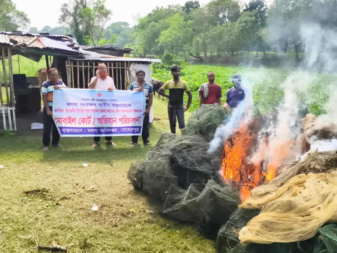 বুধবার সকাল থেকে দুপুর পর্যন্ত মেহেরপুর সদর উপজেলা মৎস্য অফিসের উদ্যোগে এ অভিযান পরিচালনা করা হয়।