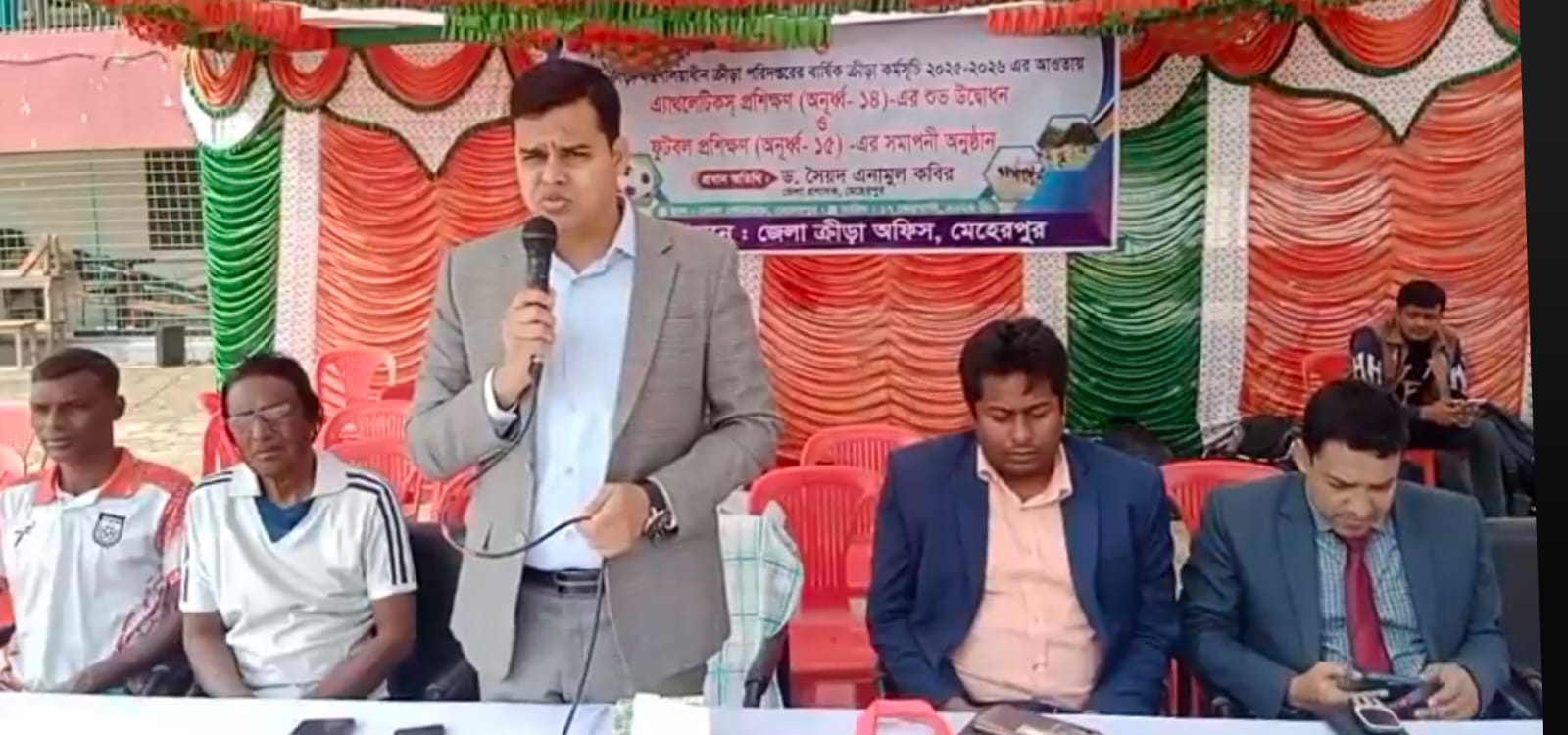 ক্রীড়া পরিদপ্তরের বার্ষিকী ক্রীড়া কর্মসূচির আওতায় মেহেরপুর জেলা ক্রীড়া অফিসের উদ্যোগে অ্যাথলেটিকস প্রশিক্ষণের উদ্বোধন করা হয়েছে। মঙ্গলবার সকালে মেহেরপুর স্টেডিয়াম মাঠে আনুষ্ঠানিকভাবে এ প্রশিক্ষণ কার্যক্রমের উদ্বোধন করা হয়।