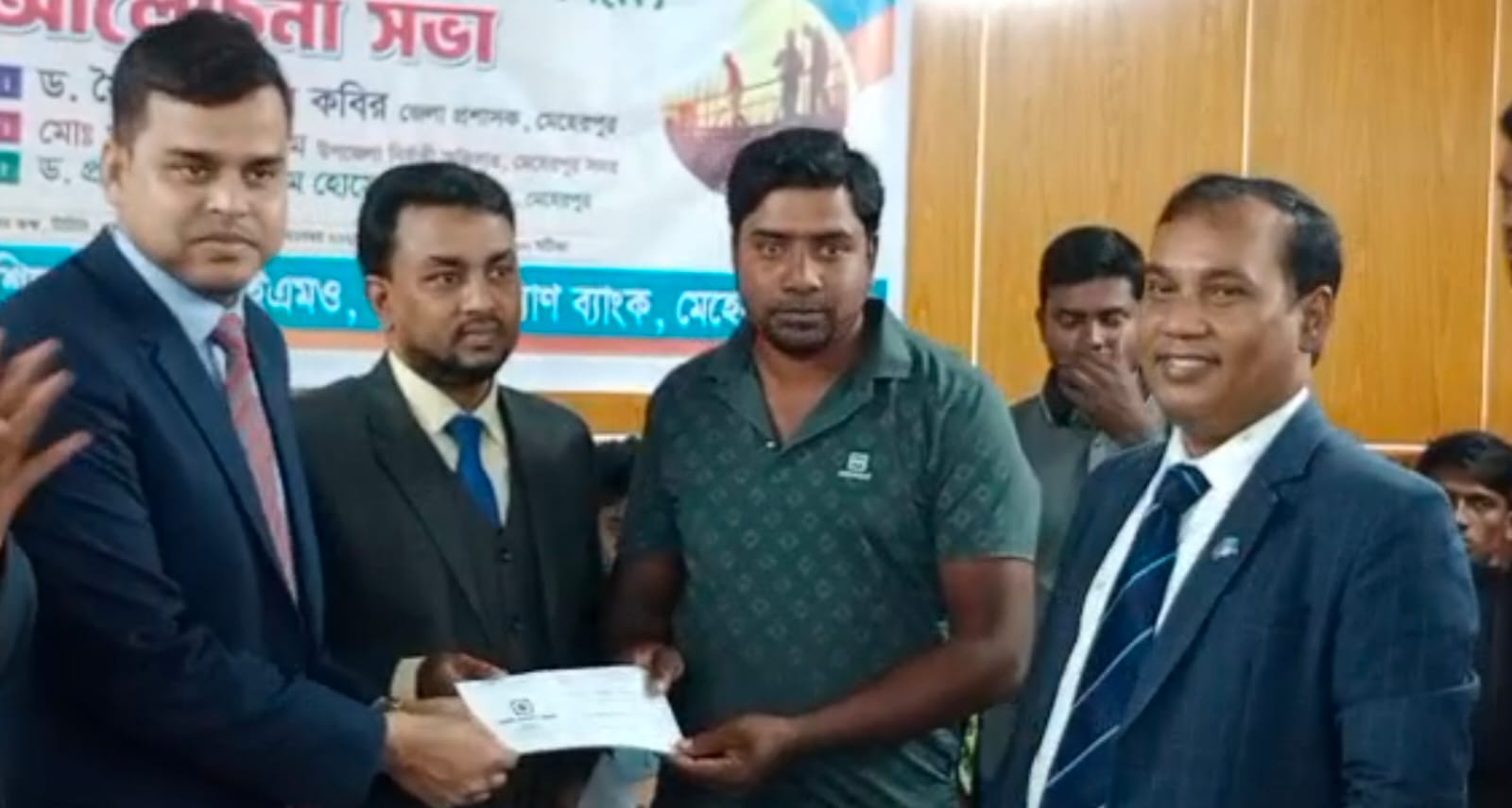 বৃহস্পতিবার দুপুরে মেহেরপুর টিটিসি মিলনায়তনে এ অনুষ্ঠান অনুষ্ঠিত হয়। অনুষ্ঠানে অতিরিক্ত জেলা প্রশাসক (সার্বিক) মো. তরিকুল ইসলাম প্রধান অতিথি হিসেবে উপস্থিত থেকে ঋণের চেক বিতরণ করেন।
