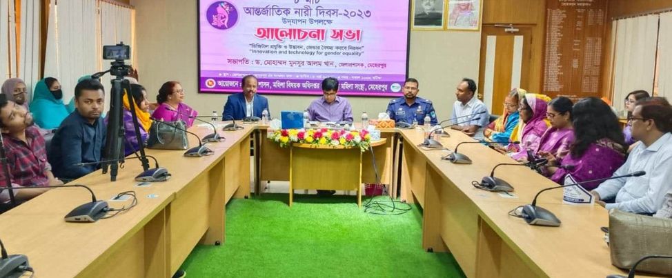 জেলা প্রশাসক ড. মুহাম্মদ মুনসুর আলম খানের সভাপতিত্বে মেহেরপুর জেলা প্রশাসন, মেহেরপুর জেলা মহিলা বিষয়ক অধিোদপ্তর ও জেলা জাতীয় মহিলা সংস্থার উদ্যোগে অনুষ্ঠিত আলোচনা সভায় বক্তব্য রাখেন মেহেরপুর জেলা পরিষদের চেয়ারম্যান অ্যাডভোকেট আব্দুস সালাম, অতিরিক্ত জেলা প্রশাসক লিংকন বিশ্বাস, অতিরিক্ত পুলিশ সুপার আজমল হোসেন, জেলা মহিলা বিষয় অধিদপ্তরের উপ পরিচালক নীলা হাফিয়া, মেহেরপুর জেলা জাতীয় মহিলা সংস্থার চেয়ারম্যান শামীম আরা হীরা, অক্সফোর্ড কিন্ডার গার্টেনের শিক্ষক নাহিদা রহমান, সুফিয়া আক্তার জামিলা প্রমূখ।
