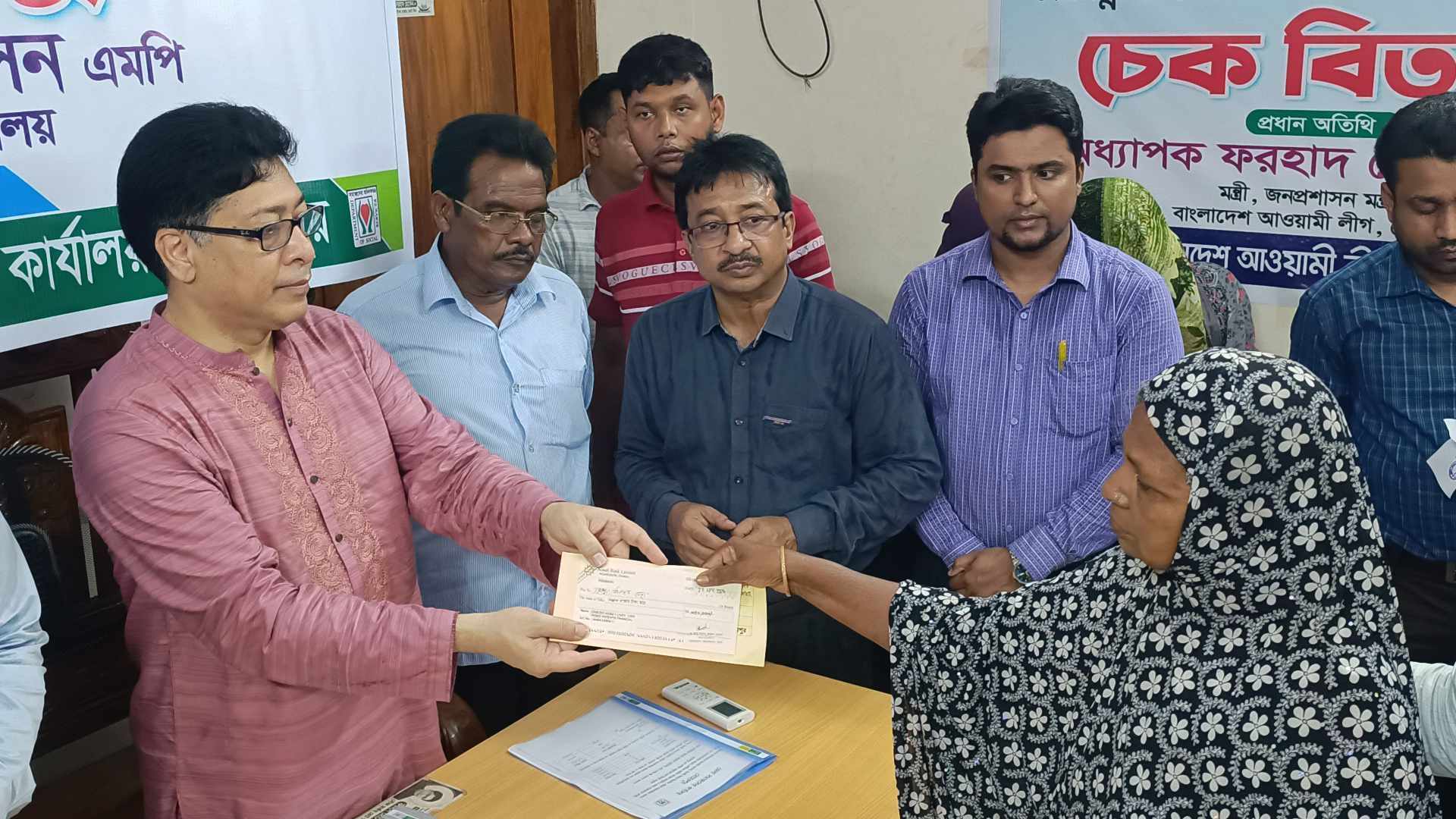 জনপ্রশাসন মন্ত্রী ফরহাদ হোসেন উপস্থিত থেকে ১২৭ জনের মাঝে ৪ লক্ষ ২০ হাজার টাকার চেক বিতরণ করেন। এর মধ্যে ১২১ জনের মাঝে সাধারণ অনুদান ৩ লক্ষ ৮৭ হাজার টাকা, এবং প্রাকৃতিক দুর্যোগে ক্ষতিগ্রস্ত ৬ জনের মাঝে