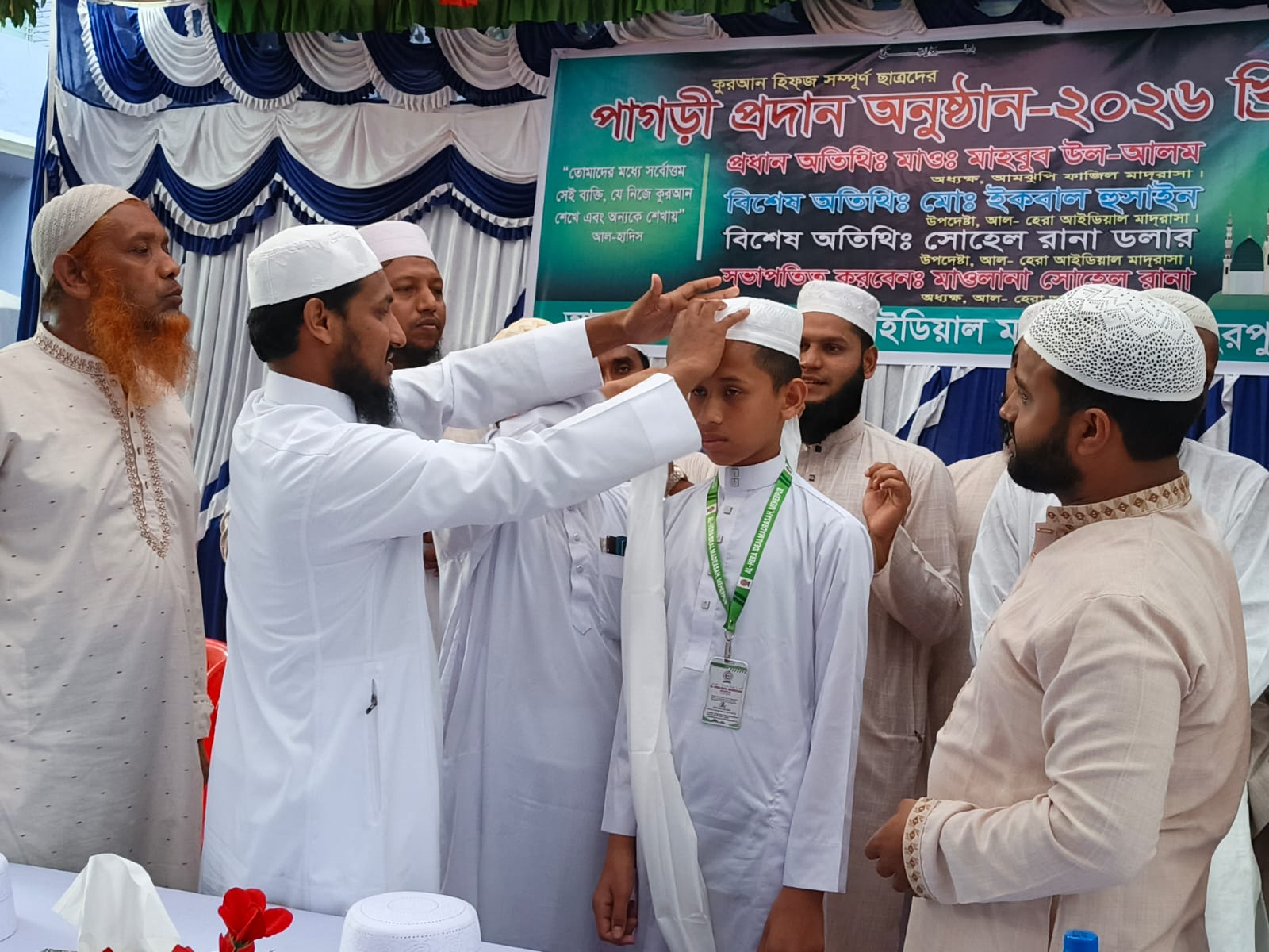 পরে আল-হেরা আইডিয়াল মাদ্রাসা থেকে কুরআন হিফজ সম্পন্নকারী হাফিজুর রহমান ও মুস্তাকিম বিল্লাহকে আনুষ্ঠানিকভাবে পাগড়ি পরিয়ে দেওয়া হয়।