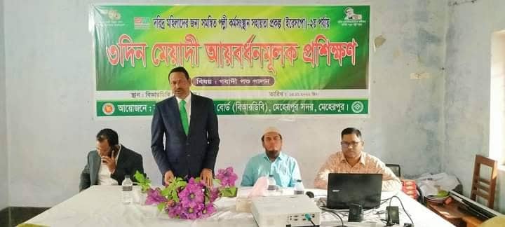 মেহেরপুর সদর উপজেলা বিআরডিবি উদ্যোগে দরিদ্র মহিলাদের জন্য সমন্বিত পল্লি কর্মসংস্থান সহায়তা প্রকল্প (ইরেসপো) ২য় পর্যায় ৩দিন মেয়াদী আয়বর্ধনমূলক প্রশিক্ষণের উদ্বোধন করা হয়েছে।