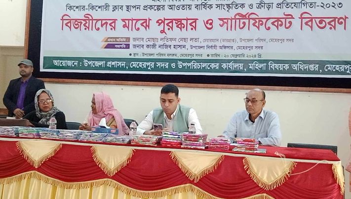 মেহেরপুর সদর উপজেলা প্রশাসন ও মহিলা বিষয়ক অধিদপ্তরের উদ্যোগ কিশোর কিশোরী ক্লাব স্থাপন প্রকল্পর আওতায় বার্ষিক ক্রীড়া ও সাংস্কৃতিক প্রতিযোগিতার মাঝে পুরস্কার বিতরণ করা হয়েছে।