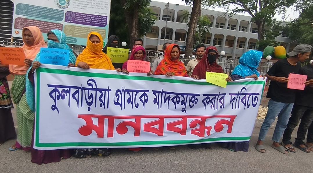 মানব বন্ধনে বক্তারা বলেন কুলবাড়িয়া গ্রামে এখন ওপেন মাদক বিক্রি ও সেবন হয়। মেহেরপুরের চিহ্নিত সন্ত্রাসী দুখু বাহিনির সদস্য ঝন্টু বিশ্বাস এর নেতৃতে দেয় । সে কারনে তার ভয়ে কেউ কিছু বলতে পারেনা । তবে মাদকের কারনে কুলবাড়ীয়া গ্রামের যুব সমাজ ধংস হয়ে যাচ্ছে। তায় আমরা সকল হুমকি ধামকি উপেক্ষা করে রাস্তায় নামতে বাধ্য হয়েছি।