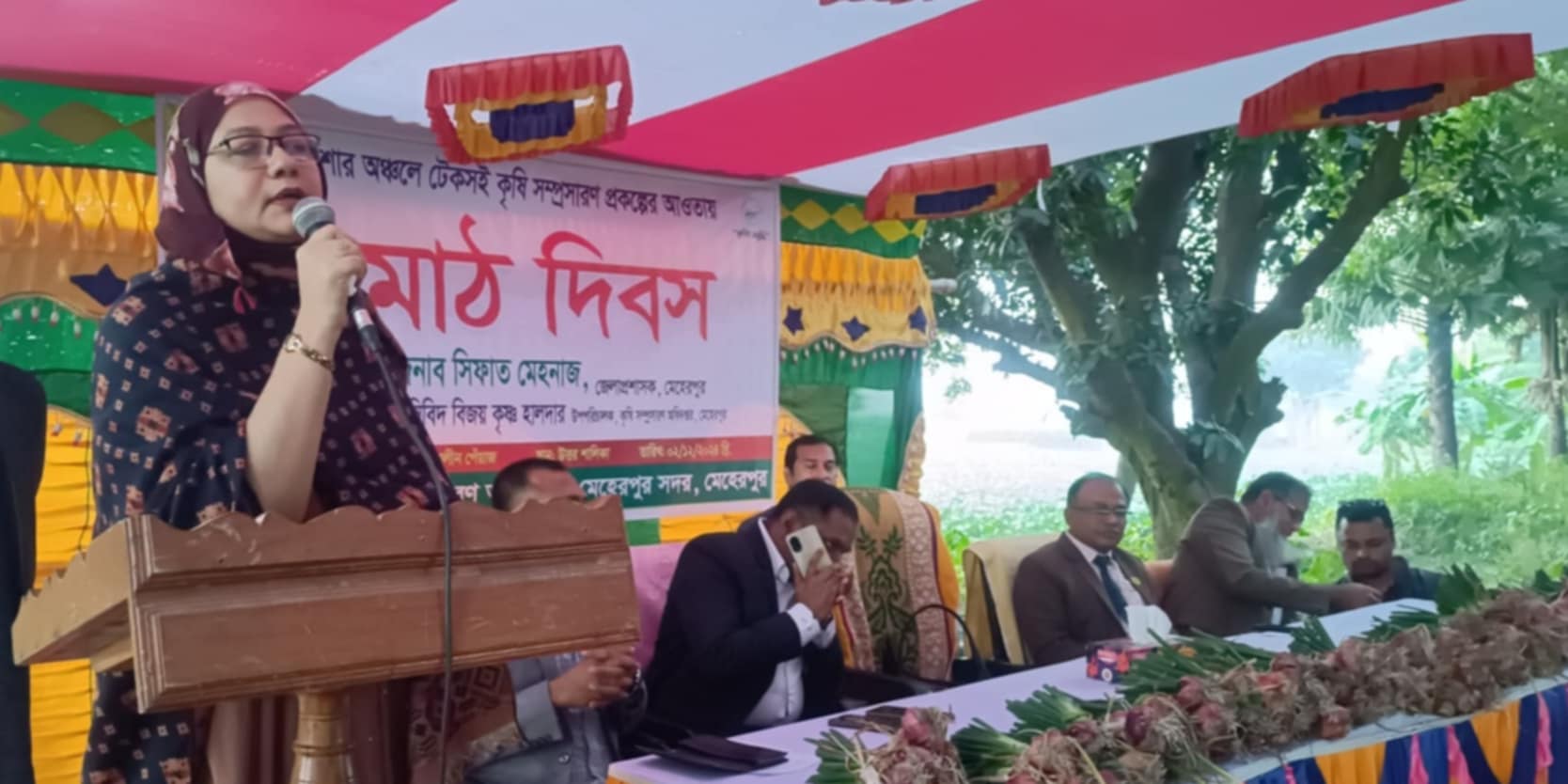 মেহেরপুর জেলা কৃষি সম্প্রসারণ অধিদপ্তরের উপপরিচালক কৃষিবিদ বিজয় কৃষ্ণ হালদারের সভাপতিত্বে মাঠ দিবসে প্রধান অতিথি হিসেবে উপস্থিত ছিলেন জেলা প্রশাসক সিফাত মেহেনাজ। বিশেষ অতিথি হিসেবে উপস্থিত ছিলেন সদর উপজেলা নির্বাহী কর্মকর্তা গাজী মূয়ীদুর রহমান, কৃষি সম্প্রসারণ অধিদপ্তরের প্রশিক্ষণ কর্মকর্তা সামছুল আলম।
