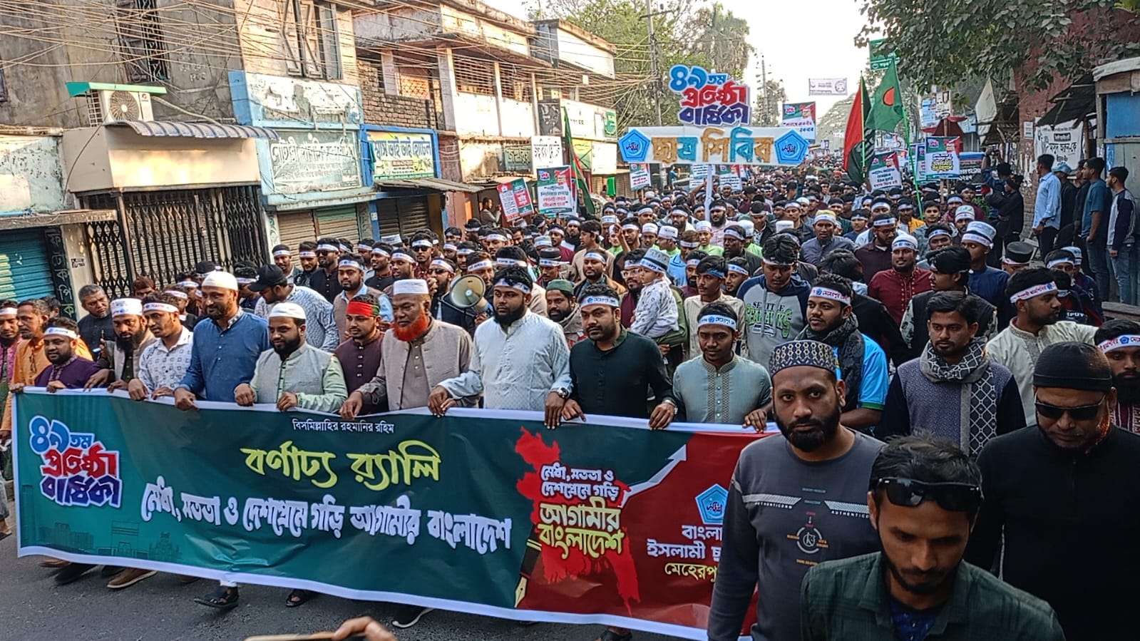 বাংলাদেশ ইসলামী ছাত্রশিবির মেহেরপুর জেলা শাখার সভাপতি আব্দুস সালামের নেতৃত্বে র্যালিটি মেহেরপুর কোর্ট সড়ক থেকে শুরু হয়ে হোটেল বাজার, বড় বাজার ও ওয়াপদা সড়ক প্রদক্ষিণ করে সরকারি কলেজ গেটে গিয়ে শেষ হয়। পরে সেখানে একটি সংক্ষিপ্ত সমাবেশ অনুষ্ঠিত হয়।