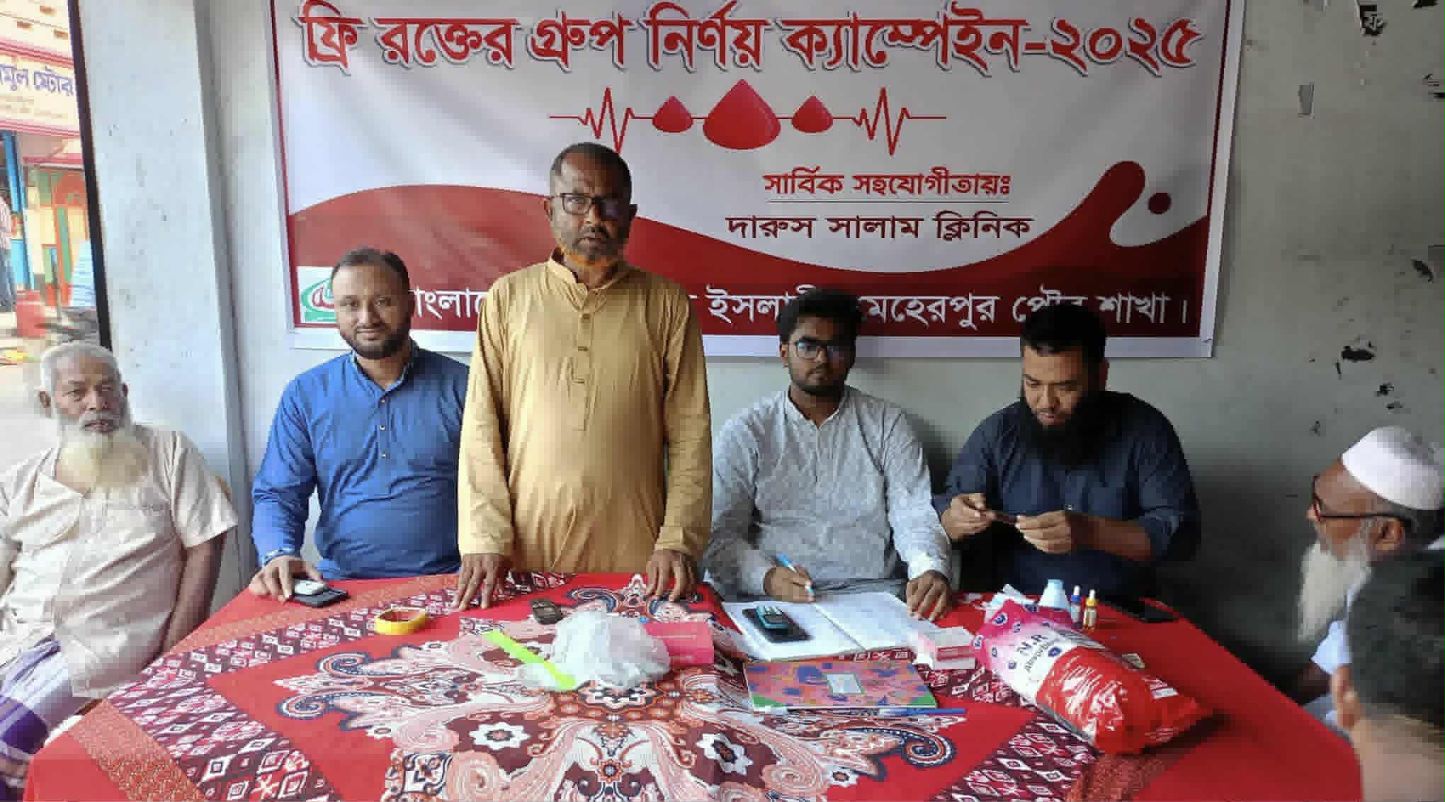 মেহেরপুর পৌরসভার ৩ নম্বর ওয়ার্ড জামায়াতে ইসলামী’র উদ্যোগে ফ্রি ব্লাড গ্রুপিং কর্মসূচির আয়োজন করা হয়েছে। শনিবার দুপুরে পৌরসভার তিন নম্বর ওয়ার্ডে এ কর্মসূচি অনুষ্ঠিত হয়।