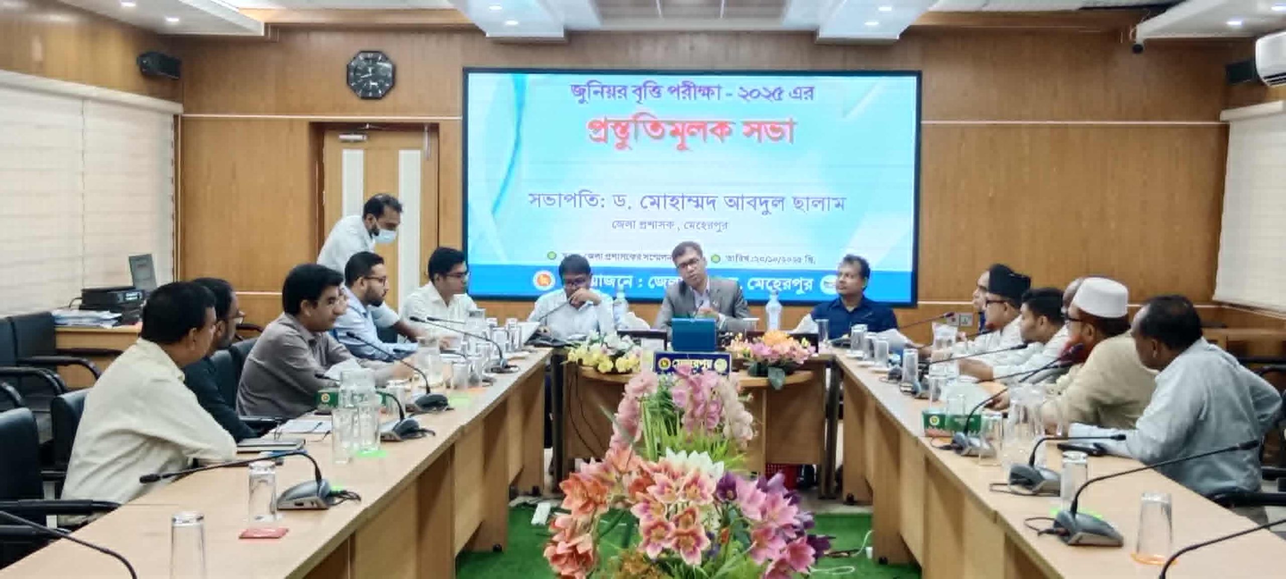 আসন্ন জুনিয়র বৃত্তি পরীক্ষা ২০২৫ সুষ্ঠুভাবে সম্পন্ন করার লক্ষ্যে প্রস্তুতি সভা অনুষ্ঠিত হয়েছে। সোমবার দুপুরে মেহেরপুর জেলা প্রশাসনের উদ্যোগে জেলা প্রশাসকের সম্মেলন কক্ষে এ সভা অনুষ্ঠিত হয়।