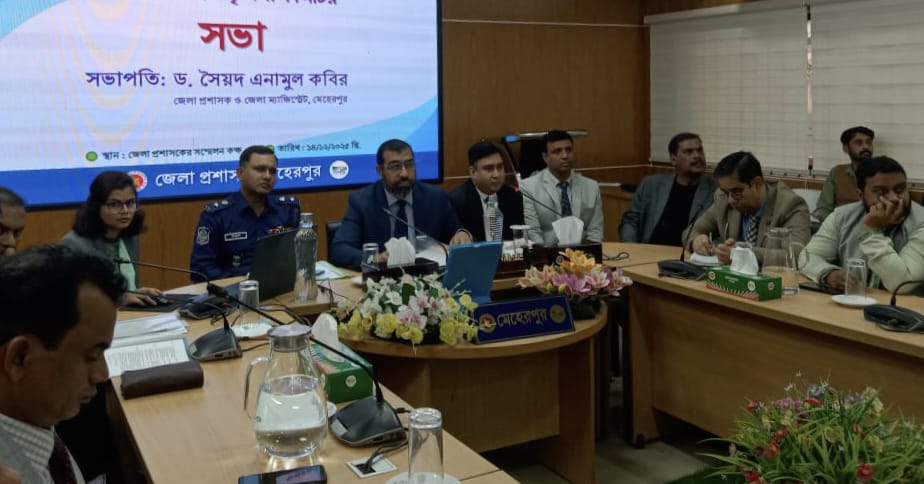 সভায় মেহেরপুর জেলায় চোরাচালান প্রতিরোধে চলমান কার্যক্রম, সীমান্ত এলাকায় নজরদারি জোরদার এবং সংশ্লিষ্ট দপ্তরগুলোর মধ্যে সমন্বয় বৃদ্ধির বিষয়ে আলোচনা করা হয়।