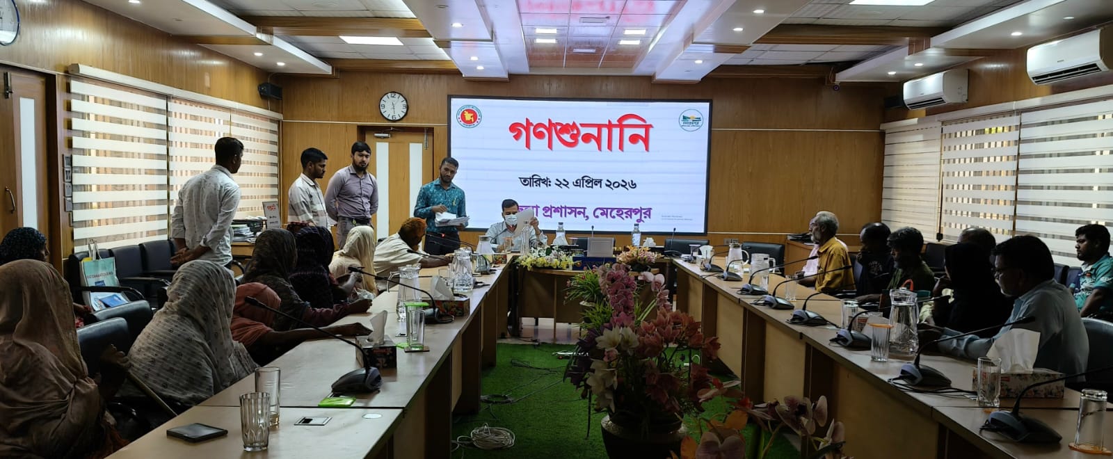 মেহেরপুর জেলা প্রশাসনের উদ্যোগে গণশুনানি অনুষ্ঠিত হয়েছে। বুধবার দুপুরে জেলা প্রশাসকের সম্মেলন কক্ষে এ গণশুনানি অনুষ্ঠিত হয়।