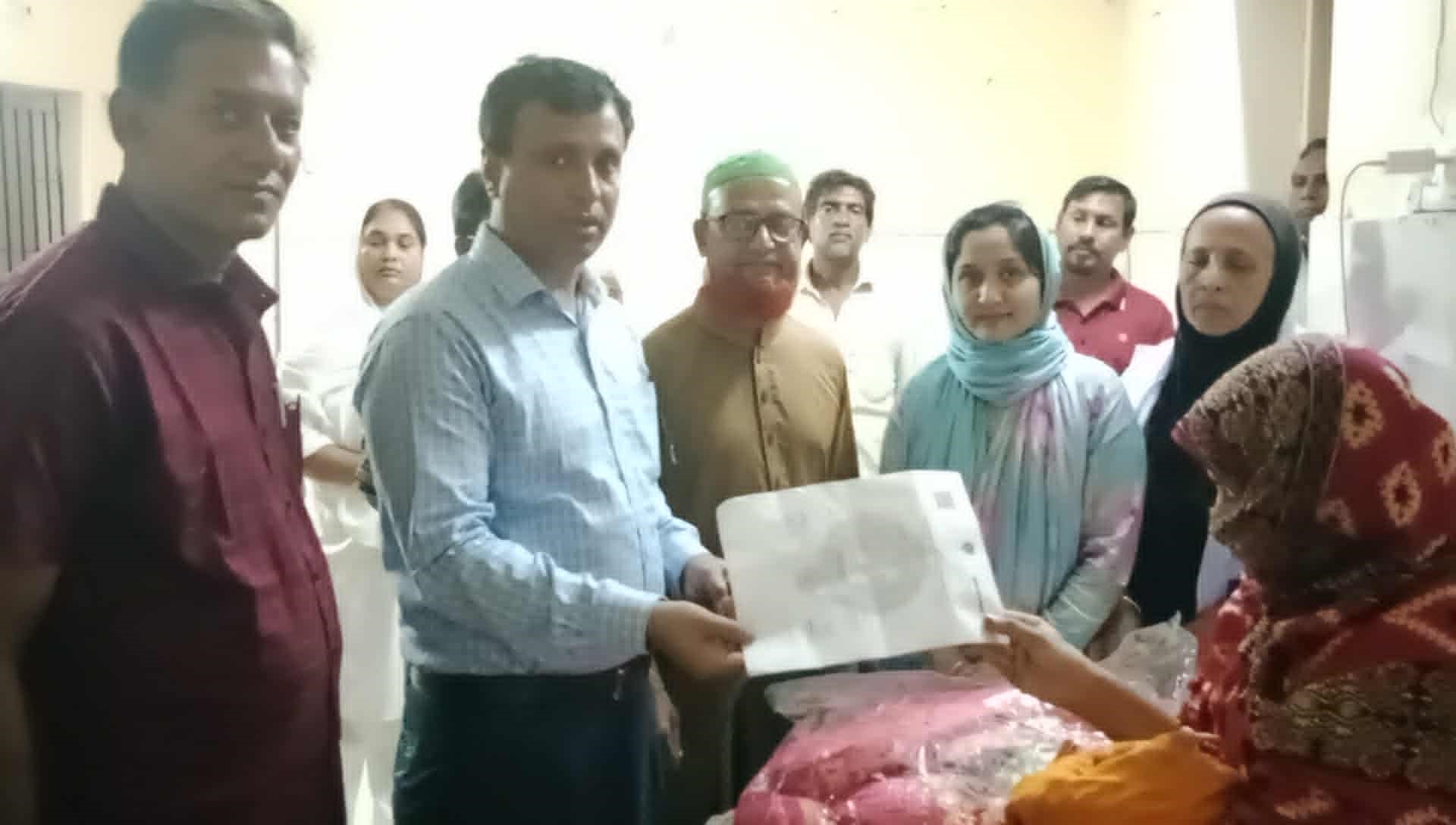 শনিবার দুপুরে জেলা প্রশাসকের পক্ষ থেকে মেহেরপুর সদর উপজেলা নির্বাহী অফিসার (ইউএনও) মো. খায়রুল ইসলাম মা ও শিশু কল্যাণ কেন্দ্রে উপস্থিত হয়ে সদর উপজেলার সোনাপুর গ্রামের ফিরোজ আলীর স্ত্রী সাদিয়া আখতারের হাতে শুভেচ্ছা উপহার তুলে দেন।